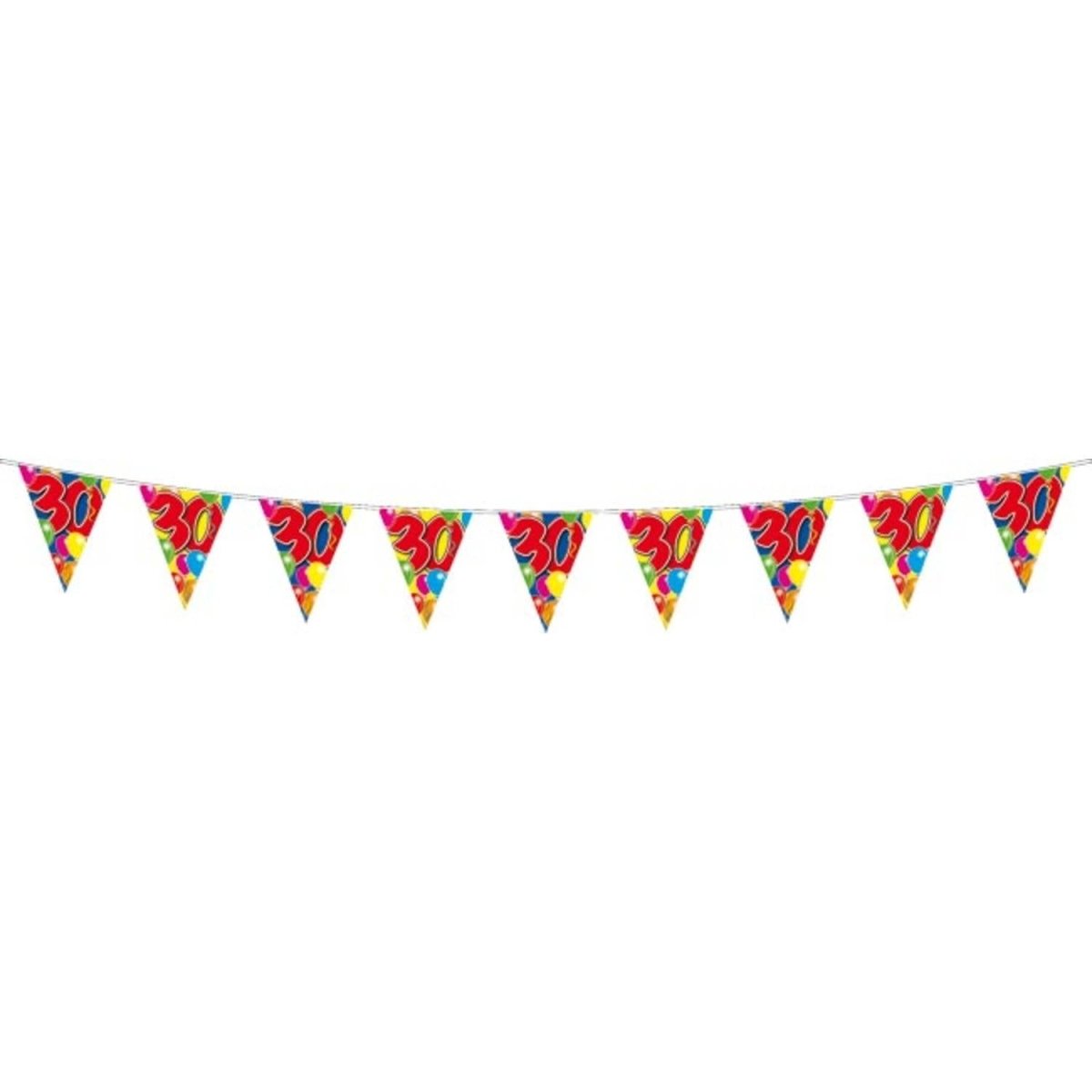 30 års slyngeballoner - 10 meter. Indhold: 1 flagline. Farve: Flerfarvet. Produkttema: Balloner. Kan f.eks. bruges til følgende fester/anledninger: fødselsdag. Denne guirlande er 10 meter lang. Artiklen er fremstillet af plast.
