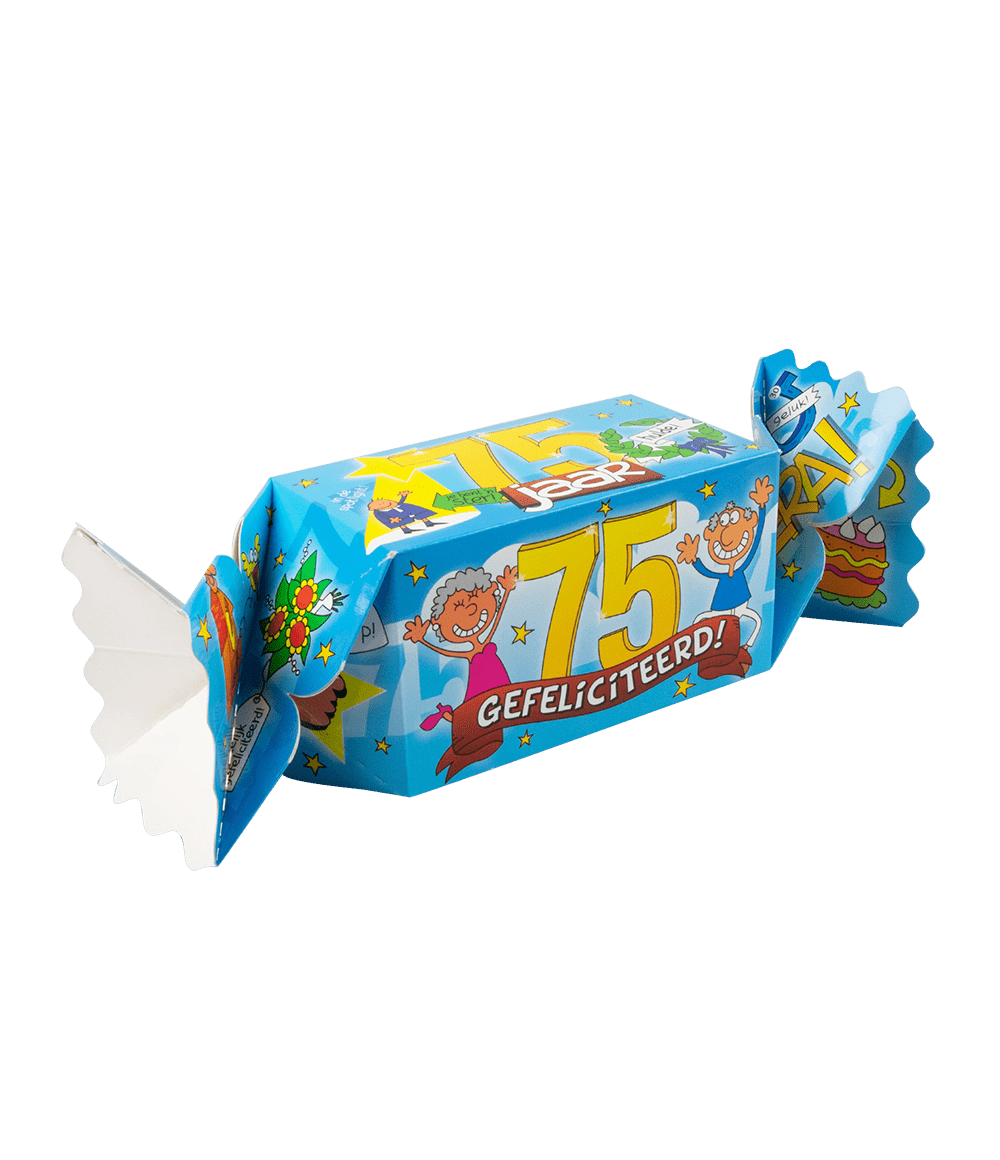 Emballageindhold: Gave-/slikæske Pret - 75 år