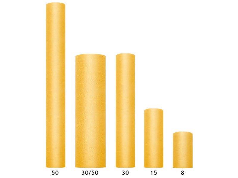 Indhold: Tyl Plain, Stiv, gul, på rulle, størrelse 0,3x50 meter. (1 stk/50 lm)