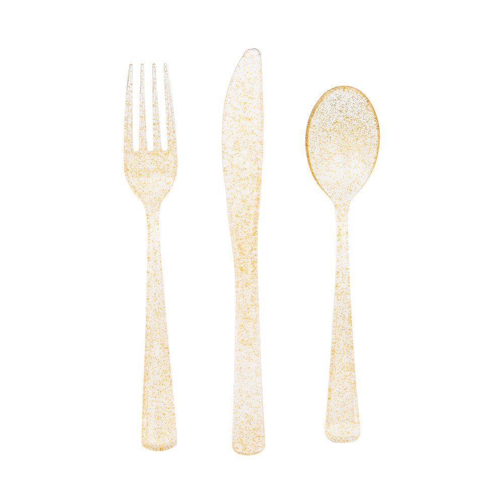 Emballageindhold:Glitterbestik Guld 18 stk