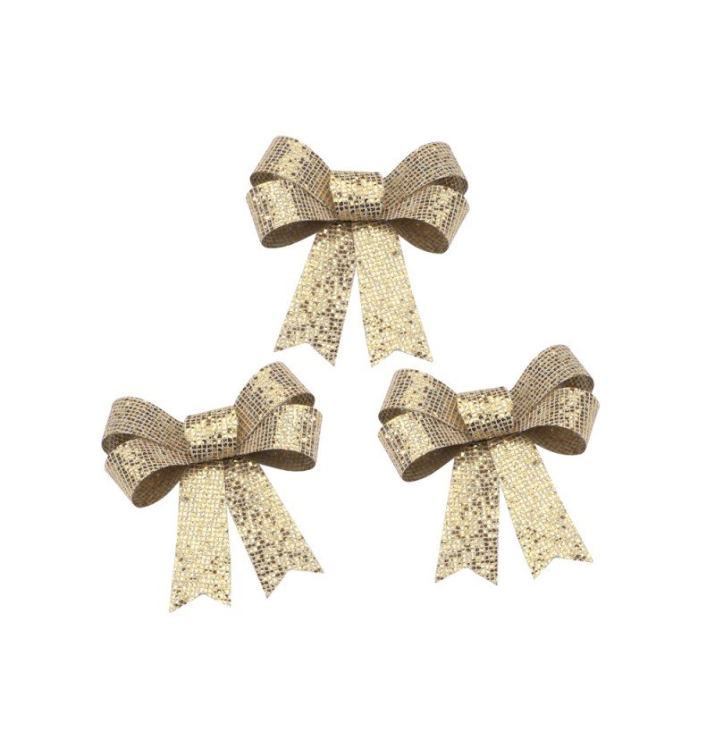 Gør dine gaver og dekorationer ekstra glitrende med dette sæt med 3 HQ PVC-guldsløjfer med glitter. Glitteret skaber et festligt look og gør enhver dekoration til et øjeblikkeligt blikfang.