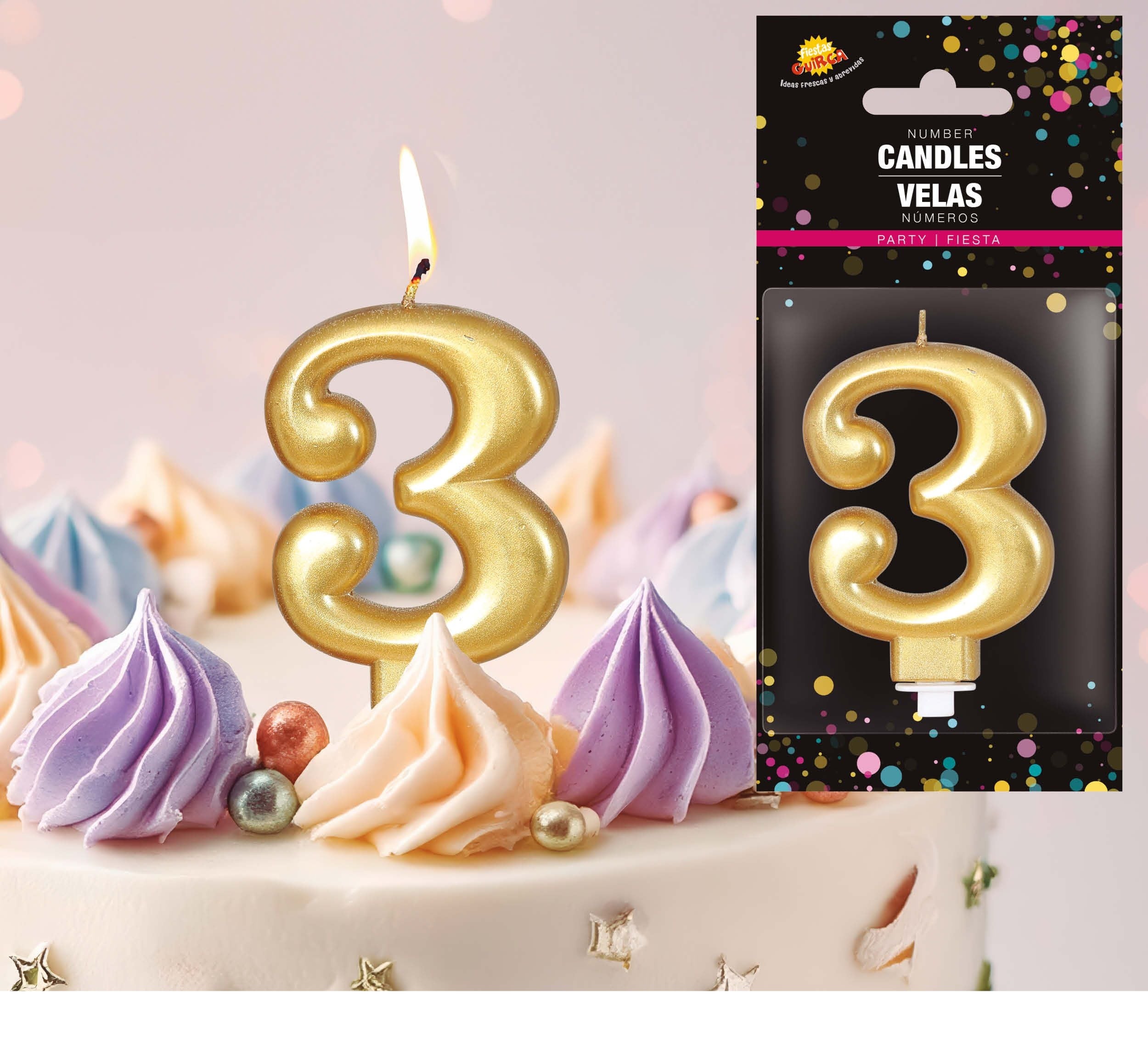 Guldlys 3 år metallisk 8 cm