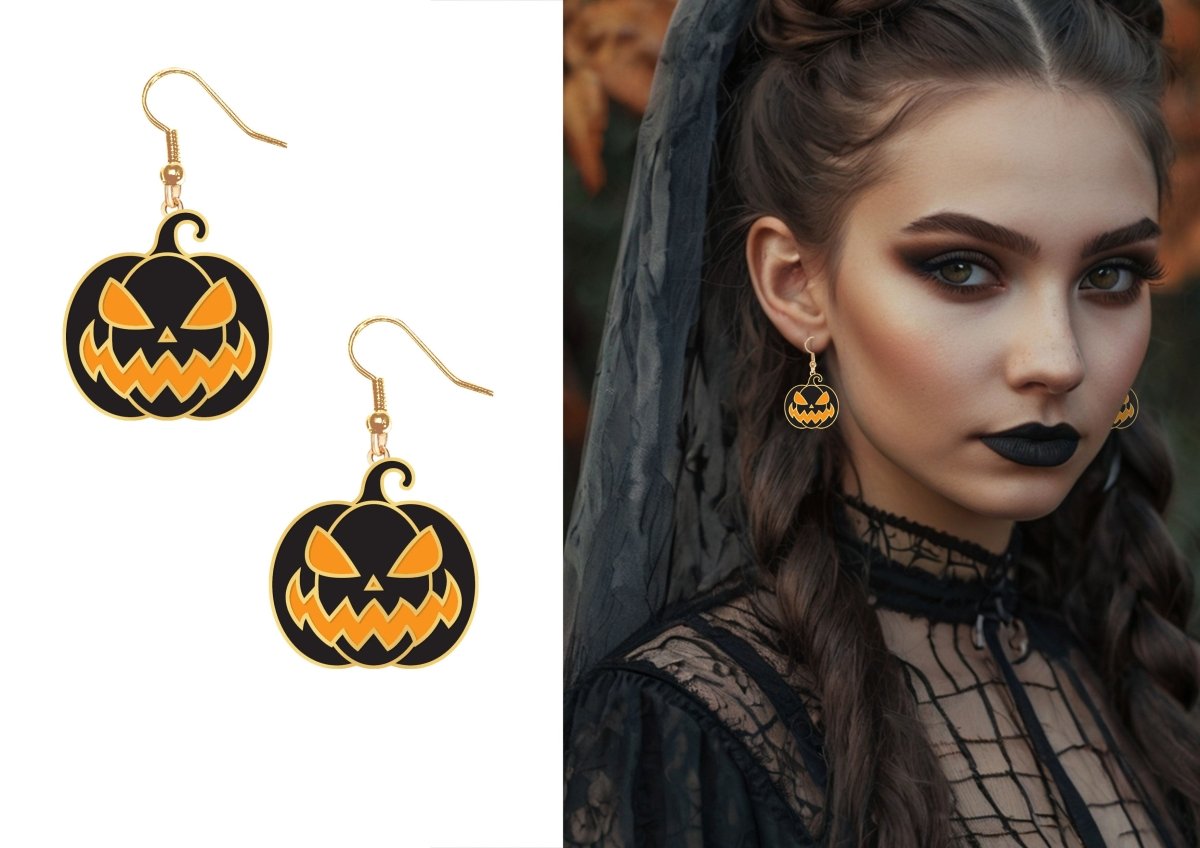 Fuldend dit halloween-look med disse øreringe i form af et græskar. Øreringene er lavet af metal og harpiks og er holdbare og lette, hvilket gør dem behagelige at have på og giver dit outfit et festligt præg.