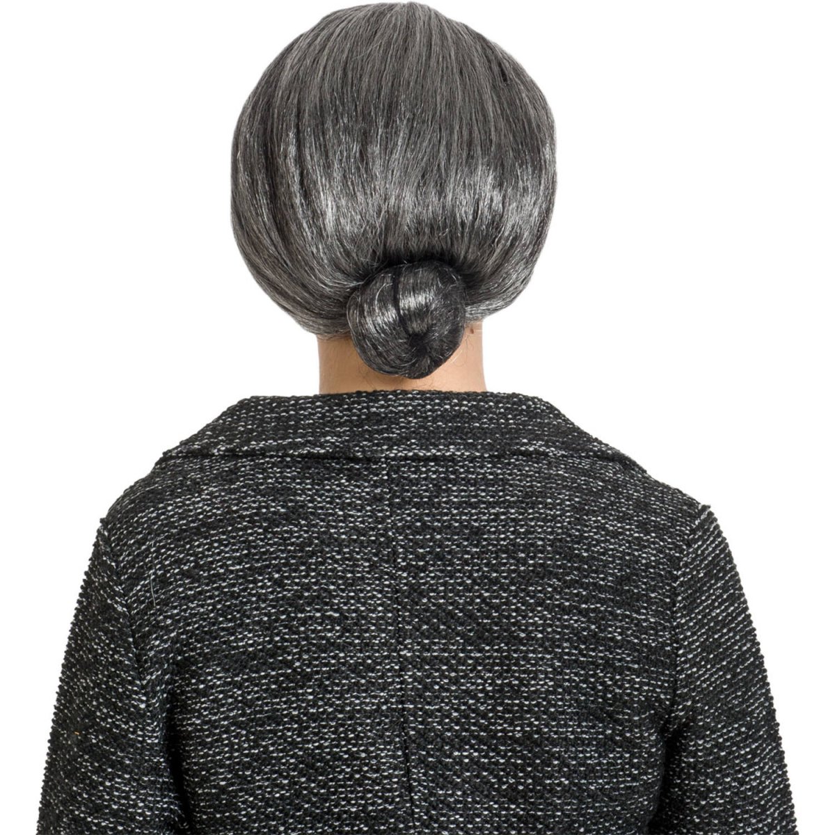 De Grijze Oma Pruik is een humoristische en opvallende accessoire voor volwassenen. Dankzij het lichte en comfortabele polyester materiaal is de pruik prettig te dragen, en de brandvertragende behandeling zorgt voor extra veiligheid. Ideaal om een kostuum compleet te maken en direct een komisch effect te creëren op feestjes en evenementen.