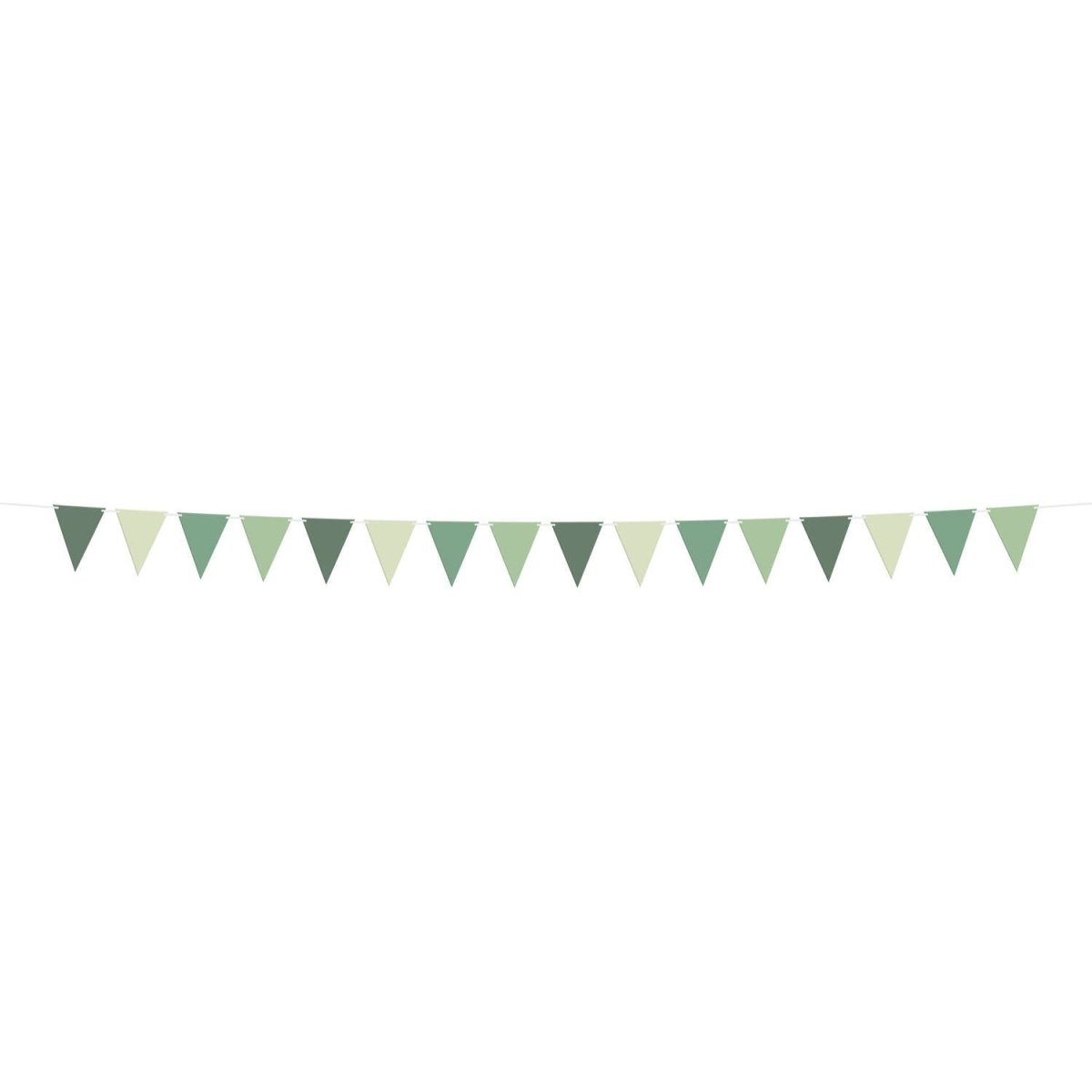 Smuk grøn er også festlig! Flagline - Serene Sage - 6 meter. Indhold: 1 flagline. Kan f.eks. bruges til følgende fester/anledninger: Fødselsdag, Temafest. En flagline med smukke grønne flag i fire forskellige grønne nuancer. Der er 16 flag på en linje. Flagene måler 17 x 21 cm. Linen er lavet af hvidt polyesterbånd. Flagene kan skubbes individuelt over båndet. Denne vare er lavet af FSC-papir.