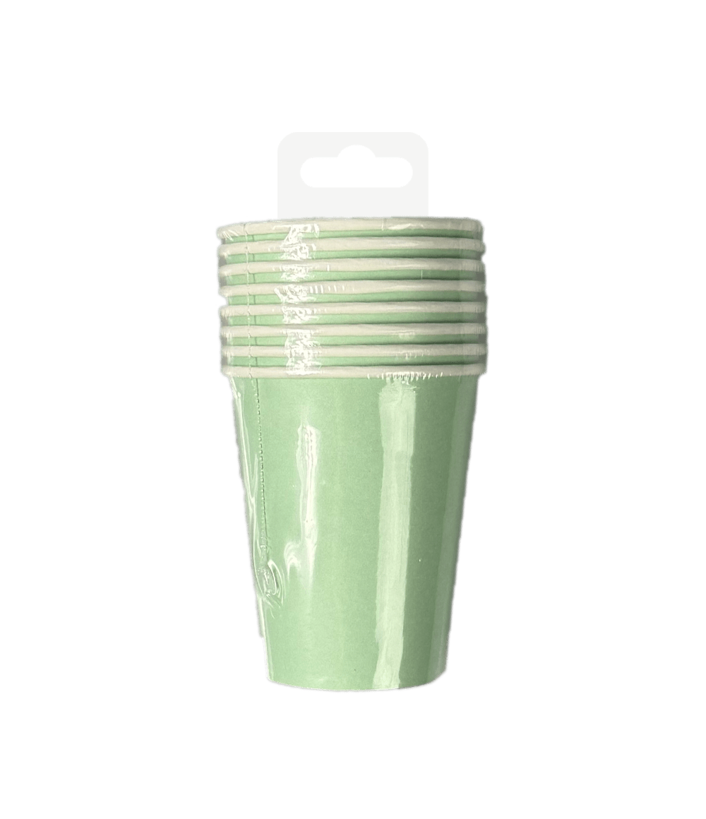 The Cups - Pastel green er de perfekte dekorationsgenstande til en fest, hvor pastelgrøn er temaet. Kopperne måler 8,5 x 7 cm, er pakket pr. 8 stk. og passer perfekt sammen med de andre pastelgrønne varer som konfetti, servietter, tallerkener, duge, snackbokse og flagline. Præsenter disse varer sammen, så det med det samme står klart for kunden, hvad denne kollektion består af. Disse kopper er lavet af papir, hvilket gør det til et miljøvenligt valg!