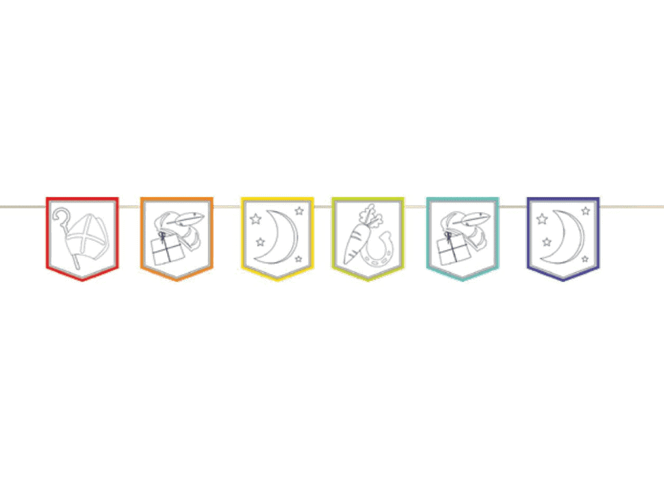 Antal: 1 stk | Størrelse: 4 meter | 6 flag med forskellige Saint-designs til at farvelægge