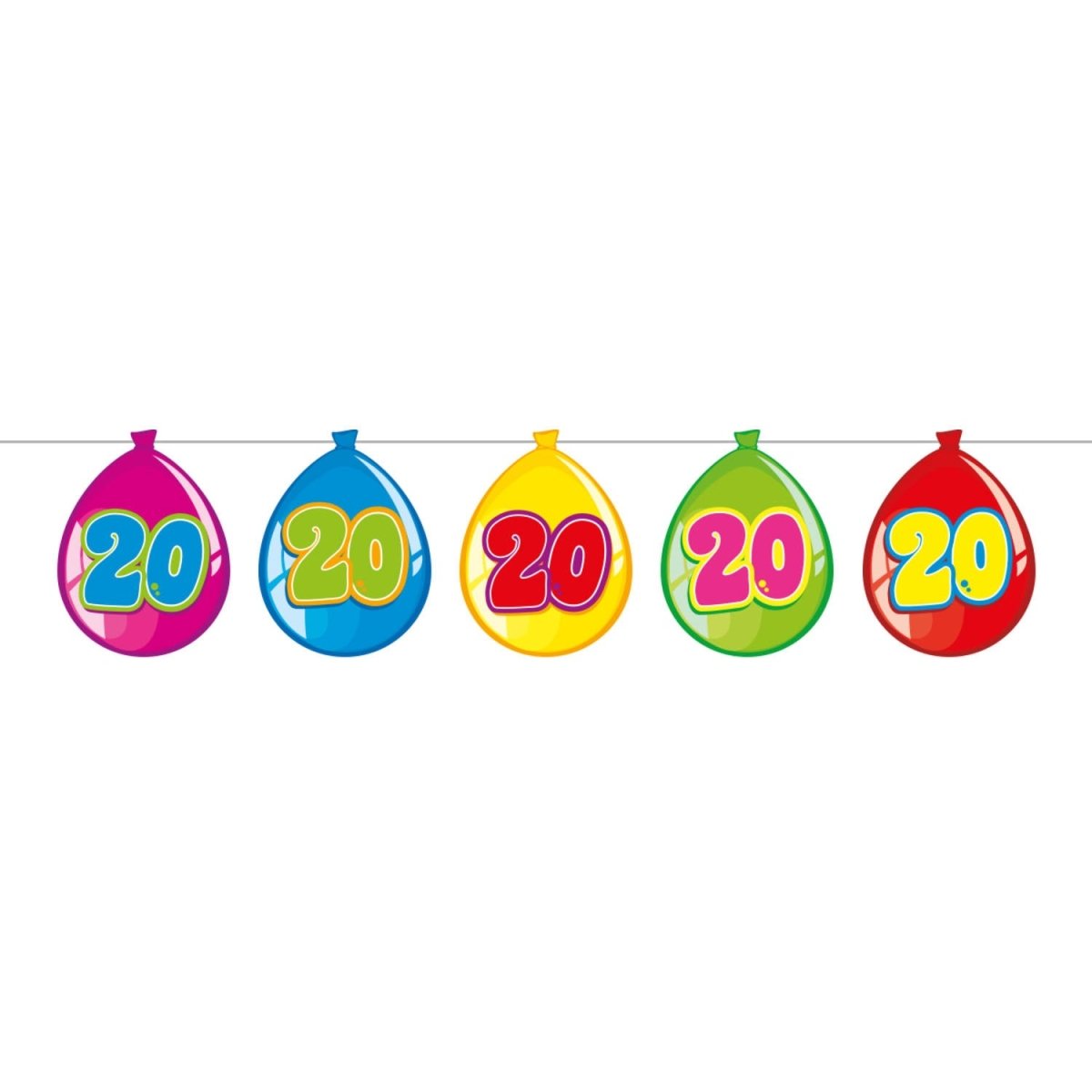 20 års fødselsdagsballoner guirlande - 10 meter. Indhold: 1 flagline. Farve: Flerfarvet. Kan f.eks. bruges til følgende fester/anledninger: fødselsdag, jubilæum. Denne guirlande er 10 meter lang. Varen er fremstillet af pap.