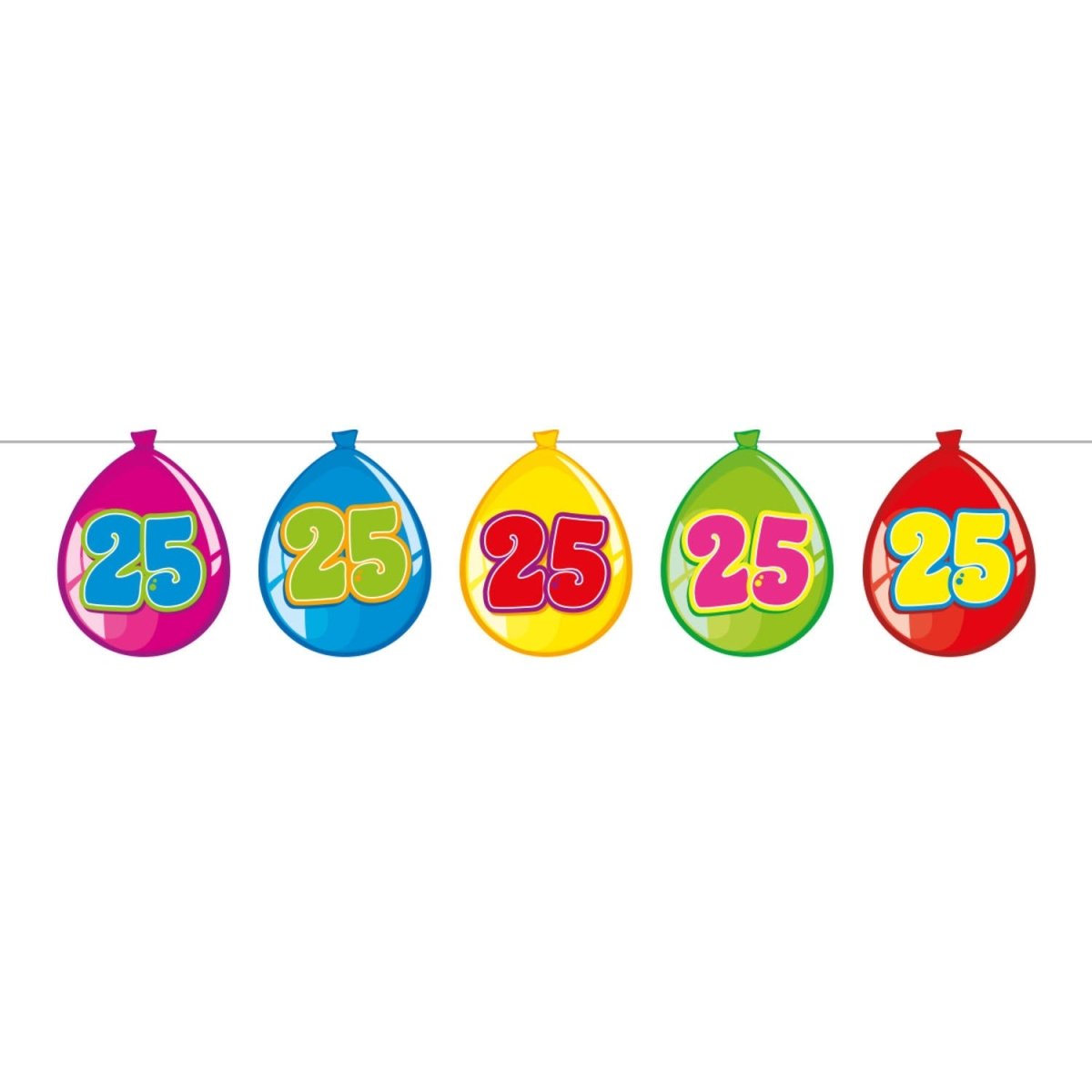 25 års fødselsdagsballoner guirlande - 10 meter. Indhold: 1 flagline. Farve: Flerfarvet. Kan f.eks. bruges til følgende fester/anledninger: fødselsdag, jubilæum. Denne guirlande er 10 meter lang. Varen er fremstillet af pap.