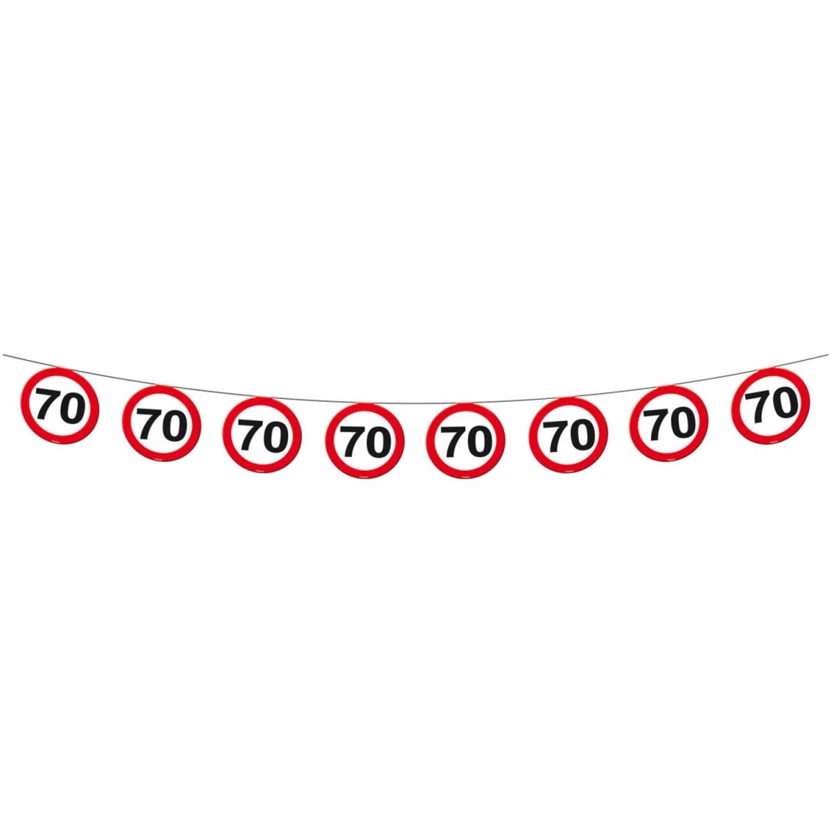 70 års trafikskilteguirlande - 12 meter. Indhold: 1 flagline. Farve: Flerfarvet. Produkttema: Trafikskilte. Kan f.eks. bruges til følgende fester/anledninger: fødselsdag. Denne guirlande er 12 meter lang. Artiklen er lavet af papir.