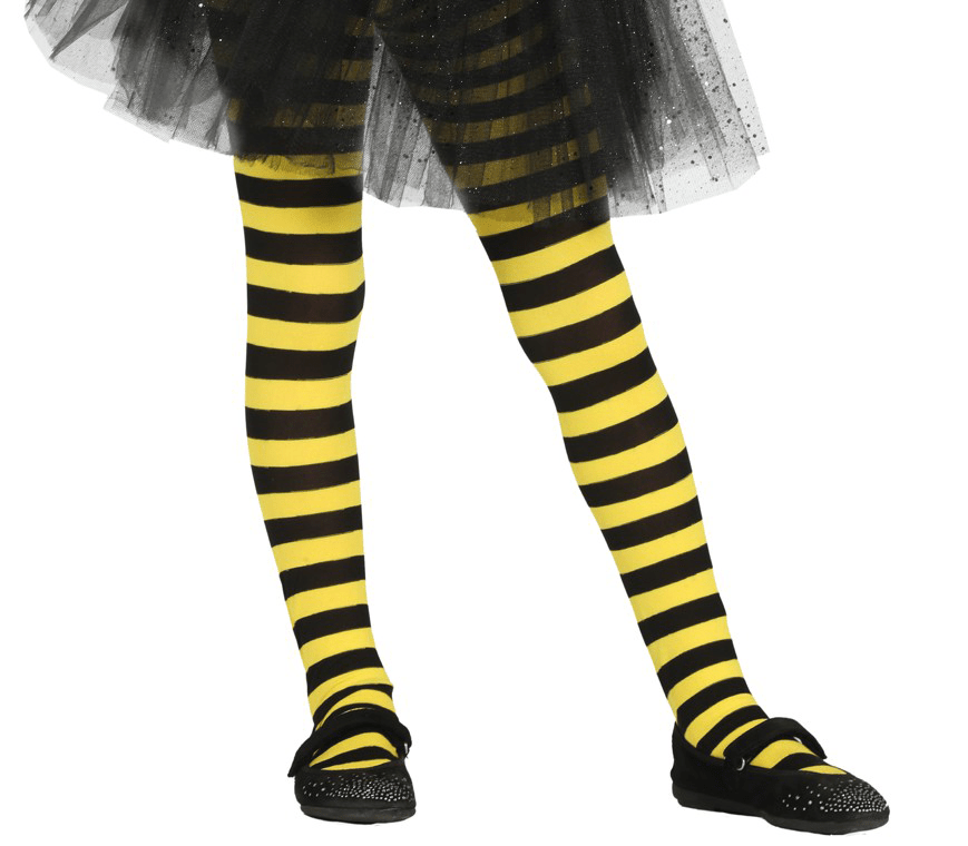Gule strømpebukser med striber til børn 5-9 år