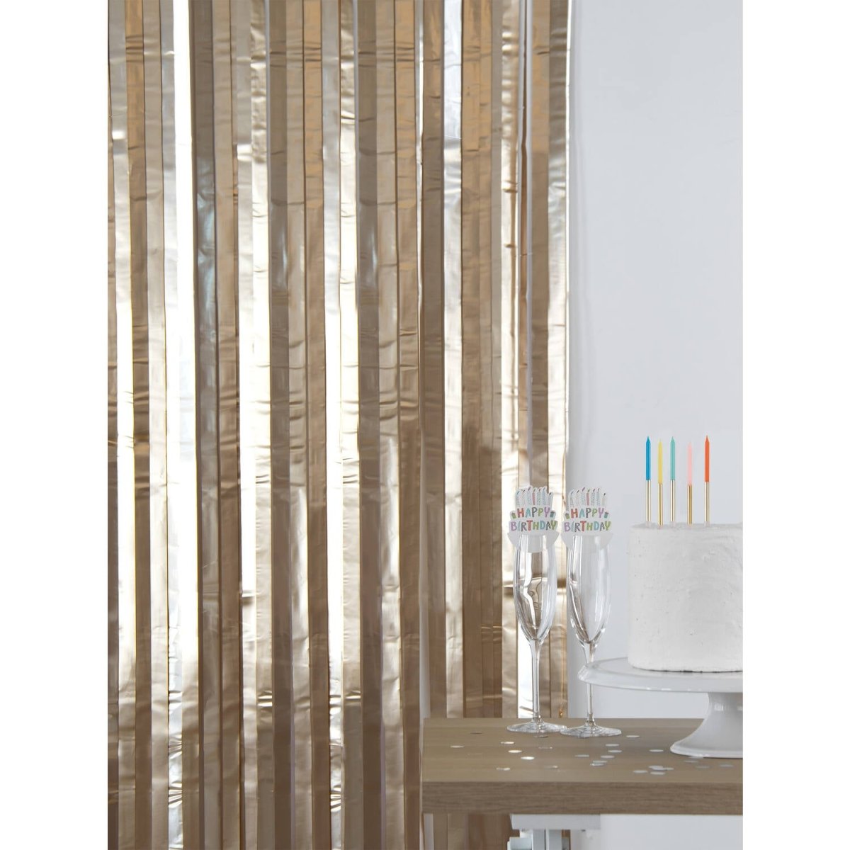 For en elegant atmosfære. Partygardin - Matt Gold - 1 x 2 m. Indhold: 1 partytæppe. Kan f.eks. bruges til følgende fester/anledninger til fester: Fødselsdag, Temafest. Et smart festtæppe med brede guldstrimler, der er 2,5 cm brede. Flot som dørforhæng, men også meget velegnet som baggrund for smagfulde fotos. Takket være den praktiske selvklæbende kant er dette festtæppe let at hænge op. Denne vare er lavet af folie.