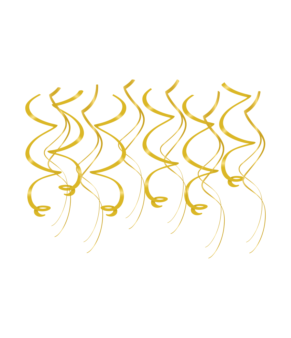Swirl-dekorationerne - guld er den perfekte tilføjelse til enhver type fest. På grund af den anvendte guldfarve er disse swirls også perfekte at kombinere med vores andre festdekorationer, som f.eks. flag, balloner og festtæpper. Der er 12 individuelle hvirvler i en pakke.