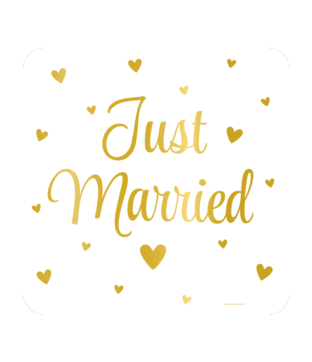Guldhvidt dørskilt Just Married 50 cm
