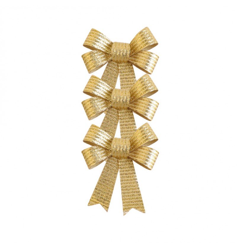 Guld sløjfe glitterstriber 10cm 3stk