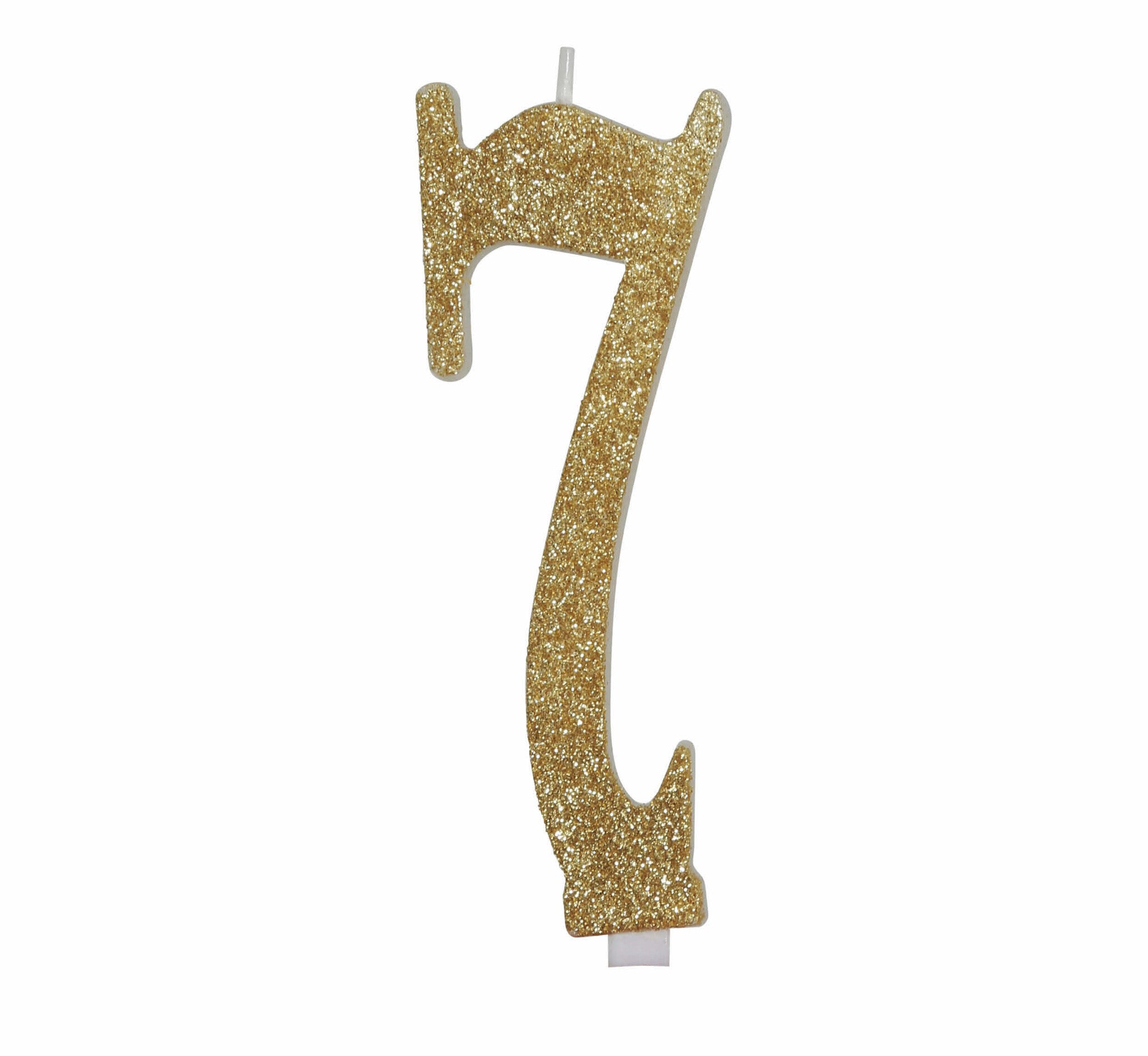 Gyldent stearinlys 7 år Glitter 12,5 cm