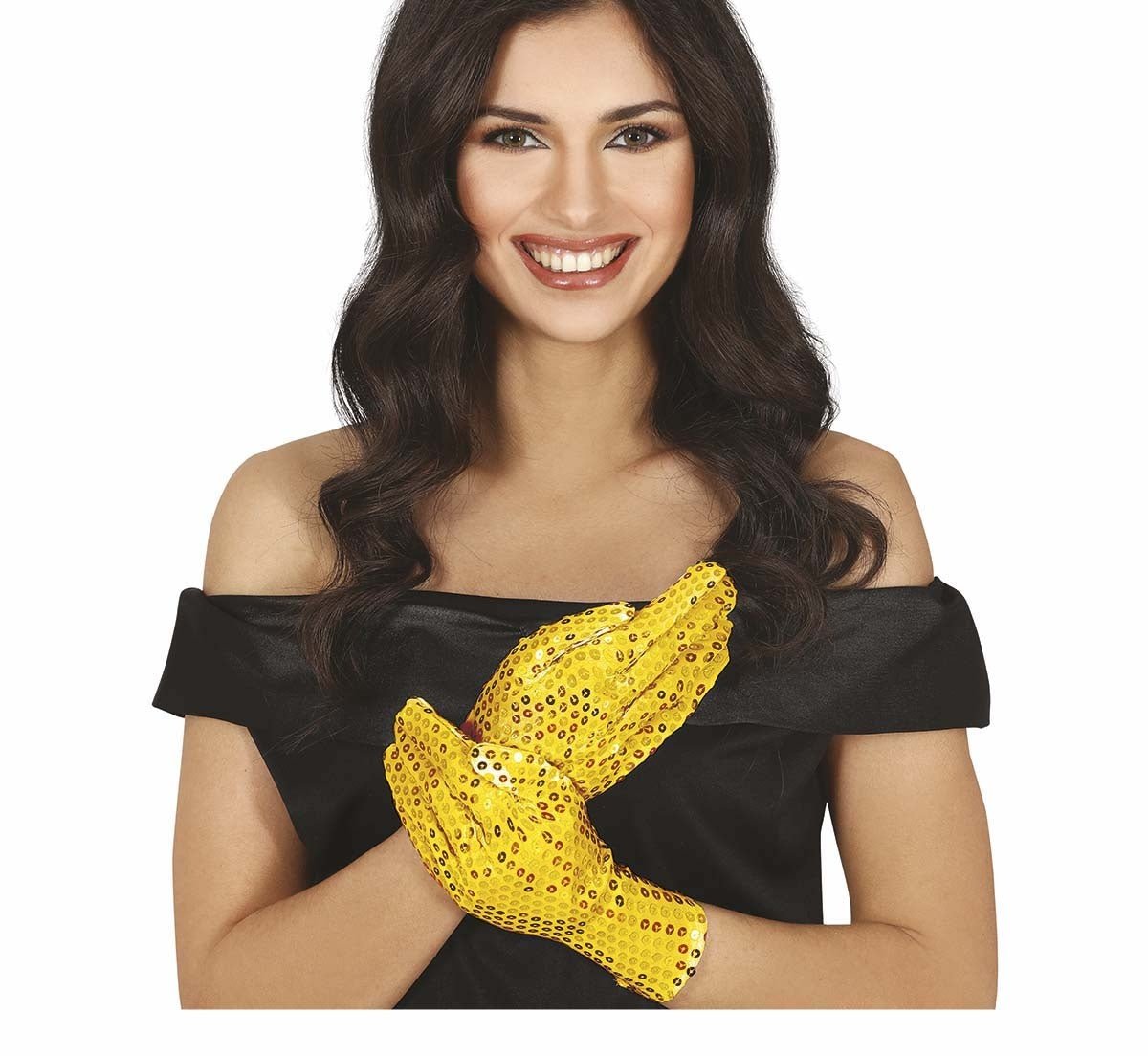 Gyldne handsker med pailletter 22 cm
