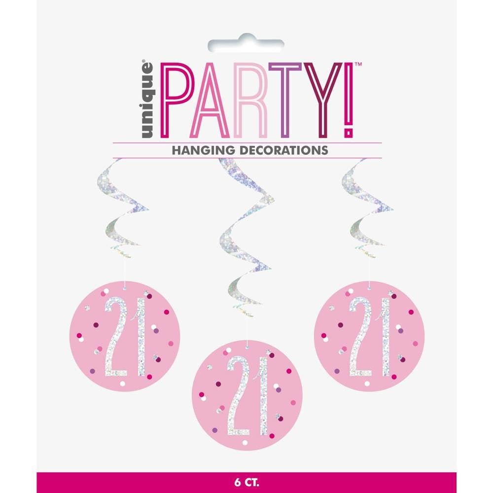Hængende dekoration 21 år Pink 81cm 6stk