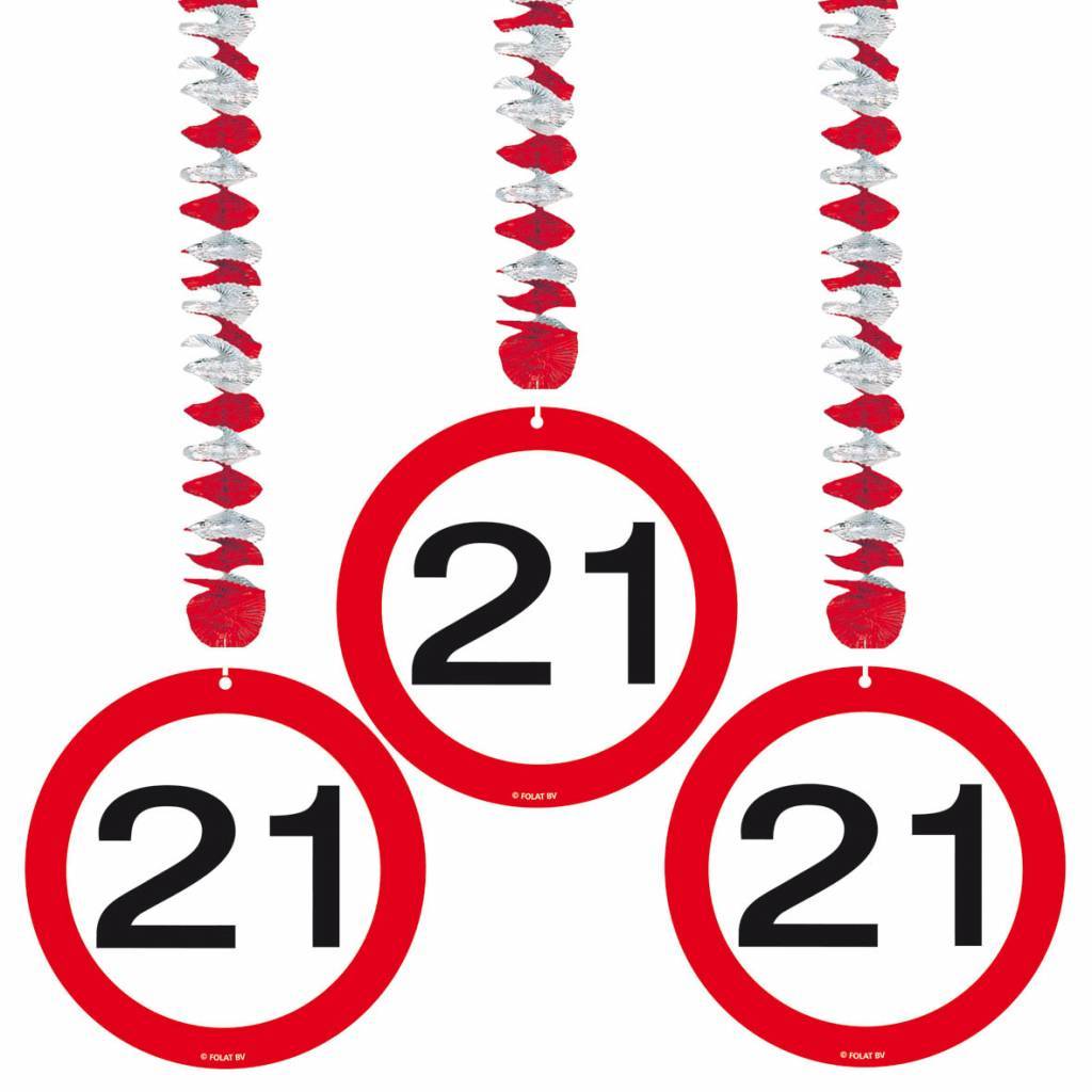 Hængende dekoration 21 års trafikskilt 75 cm 3 stk