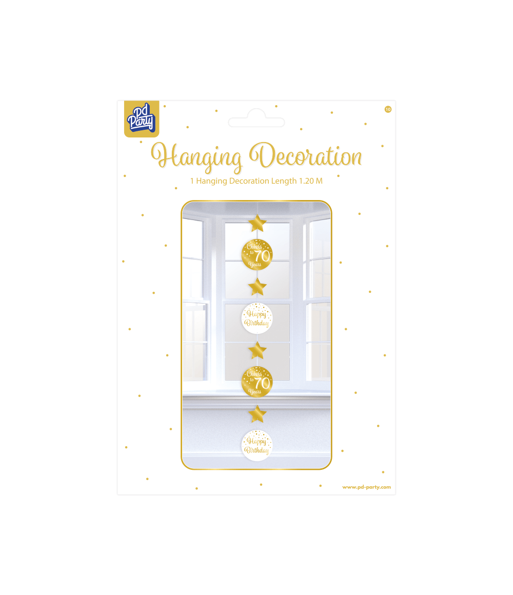 Hængende dekoration 70 år guld hvid 20,5 cm