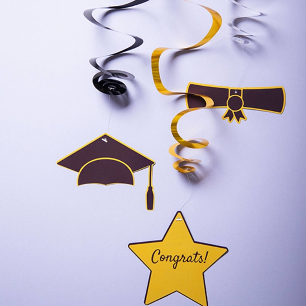 Hængende dekoration Academic Elegance - 3 stk. Indhold: 3 stk. hængende dekoration. Farve: Flerfarvet. Kan f.eks. bruges til følgende fester/anledninger: Dimission. Vedhængene er trykt på begge sider. Artiklen er lavet af papir.