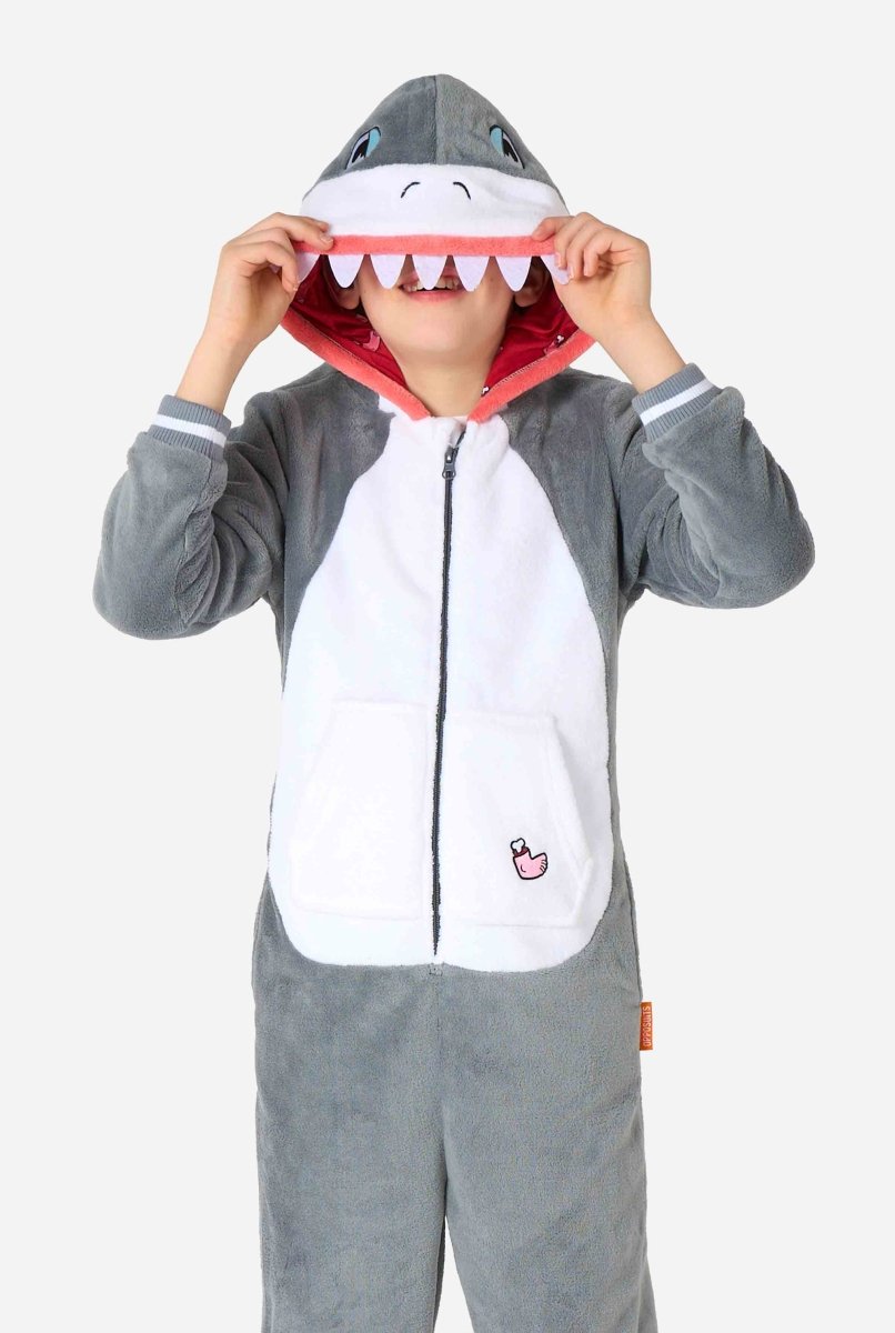 Dyk ned i den ultimative komforts dybder, og sørg for, at dine arme og ben altid er sikkert om bord. Sharks Onesie til børn er farligt hyggelig, og selv om den tilføjer et strejf af sjov til enhver skolefest, er den også fantastisk til at synke ned i på sofaen. Bliv indbegrebet af afslapning med denne stilfulde Shark Onesie!