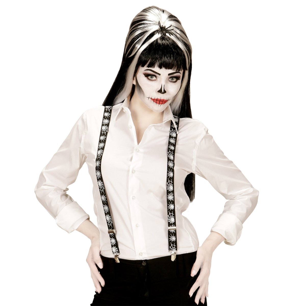 Fuldend dit halloween-outfit med disse sort-hvide seler med edderkoppespind-design. Ideelle til udklædningsfester, temafester eller som et iøjnefaldende tilbehør til dit kostume.