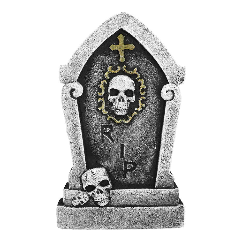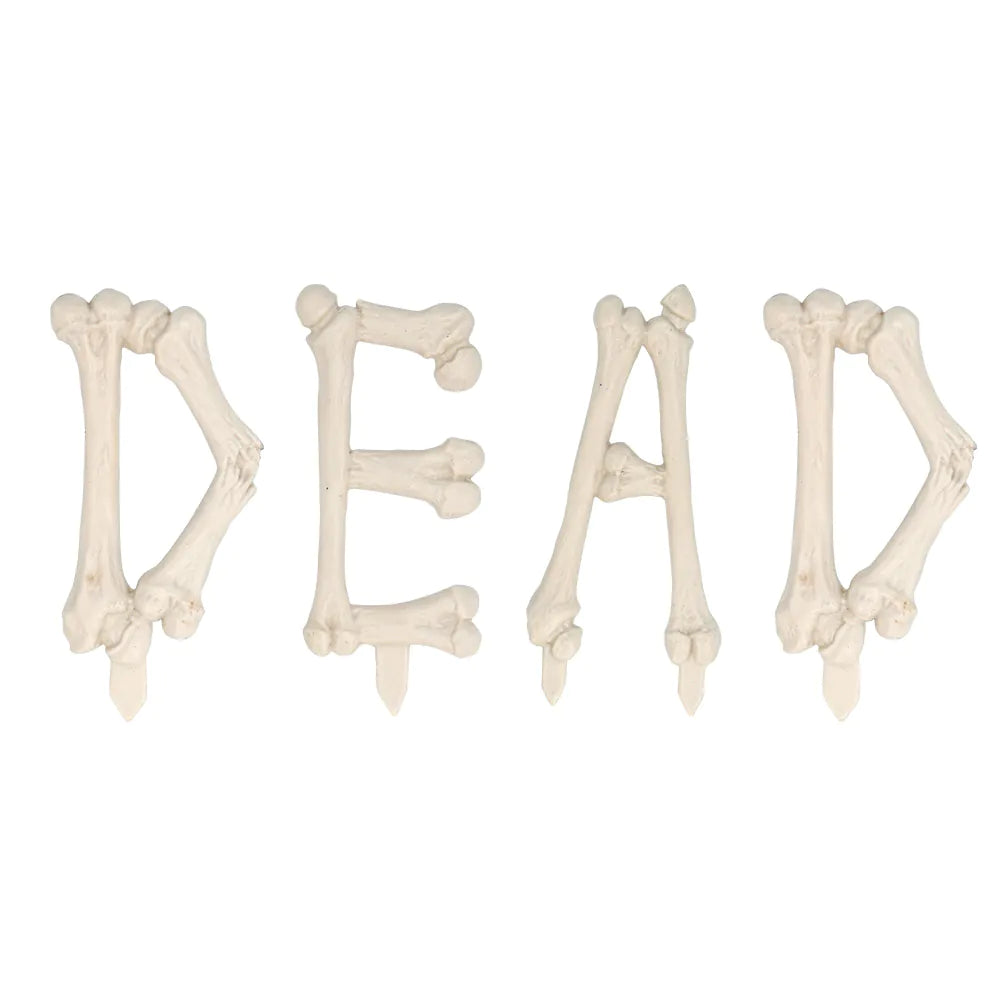 Gravstensdekorationssæt (3 gravsten, 2 skeletarme, 4 knogler i form af bogstaverne DEAD, sort krage, sort blomst, 4 rotter, 7 edderkopper, blodige bandager, spindelvæv)