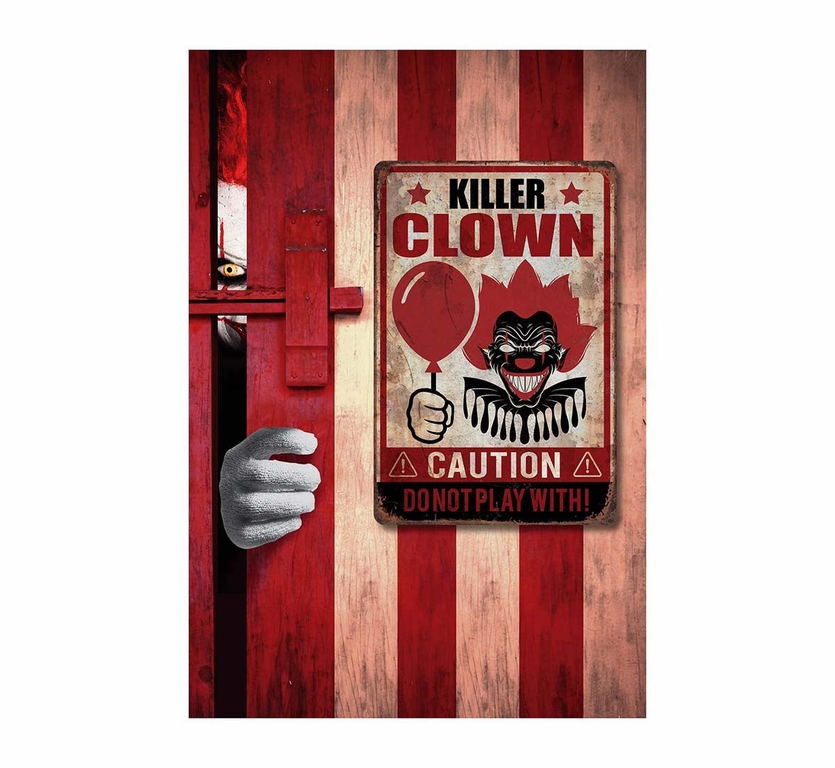 Gør dine halloweenindgange skræmmende med dette 36 cm store Killer Clown-dørskilt, som du kender fra IT. Papdesignet giver en øjeblikkelig iøjnefaldende og uhyggelig indgang.