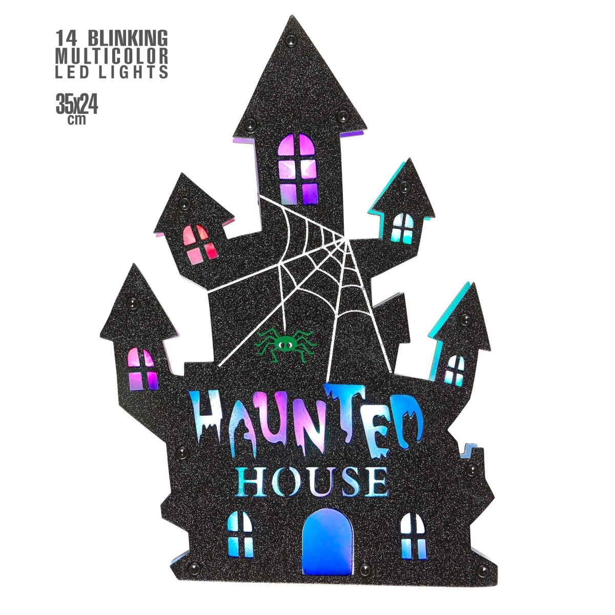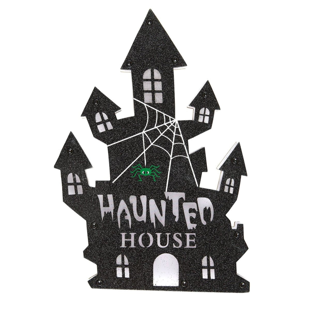 Halloween-dørskilt hjemsøgt hus med lys