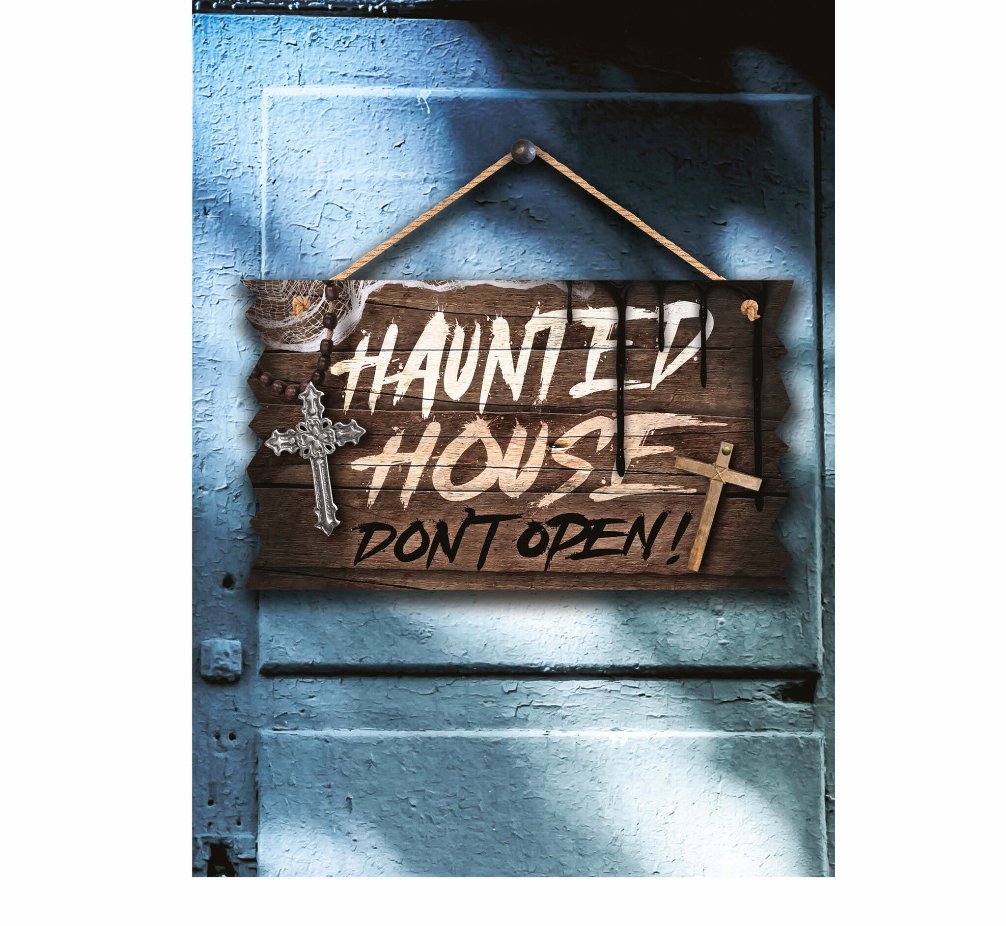 Halloween-dørskilte hjemsøgt hus 35 cm
