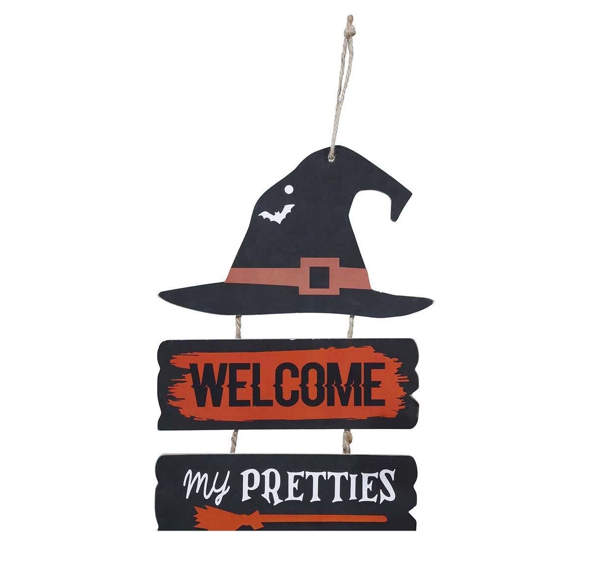Byd dine gæster velkommen på en festlig og uhyggelig måde med dette 32 cm store halloween-dørskilt Welcome. Skiltet er lavet af træ og er ideelt til at hænge på døren under Halloween eller temafester.