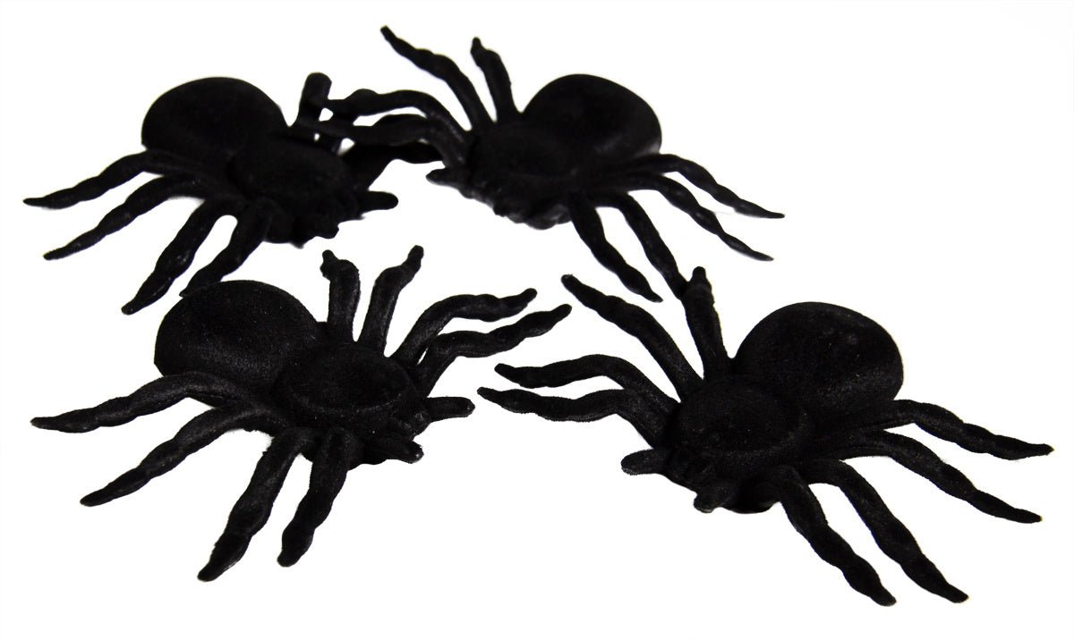 Sæt med 4 edderkopper. Indhold: 4 edderkopper. Kan f.eks. bruges til følgende fester/anledninger: Halloween. Edderkopperne måler 7 x 11 x 2 cm. Varen er fremstillet af plast.