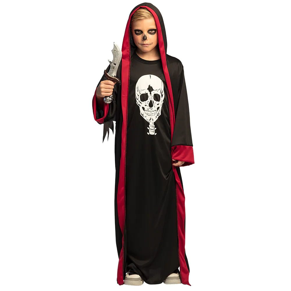 Gør halloweenkostumet mere spændende ved at tilføje et våben som tilbehør. Denne dolk er 29 cm lang og har et dødningehoved på håndtaget, som gør den endnu mere skræmmende. Kniven er sjov for børn, men bestemt også for voksne.