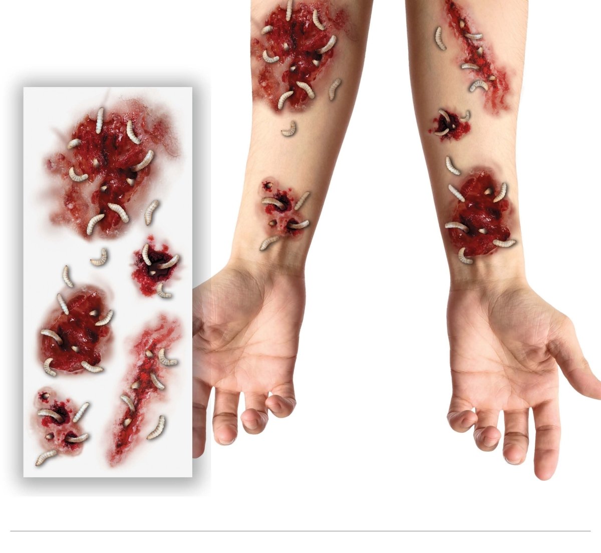 Halloween falske tatoveringer Sår med orme 30 cm