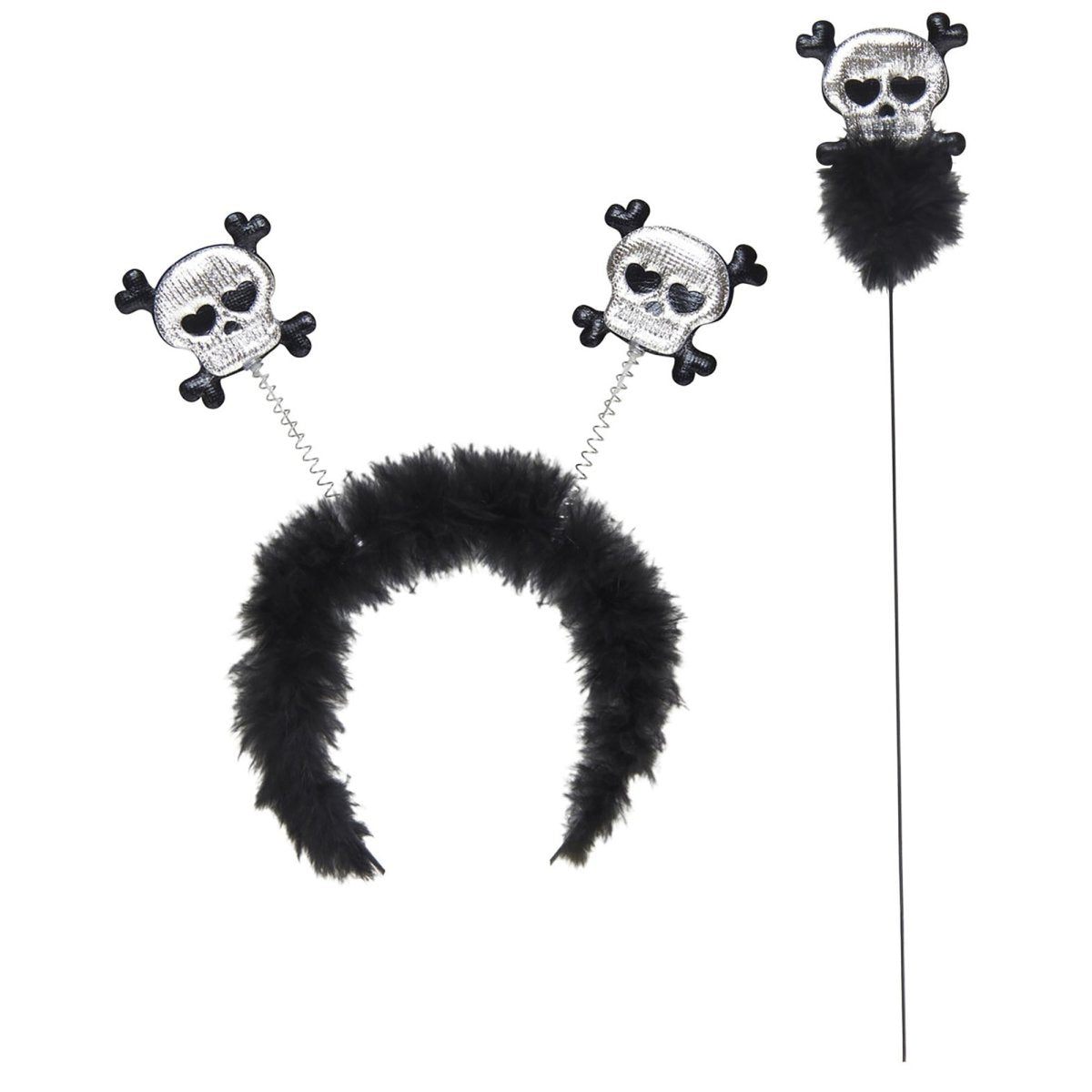 Pakkens indhold: pandebånd og stav med kranie og knogler