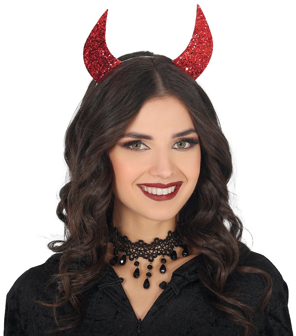 Halloween-hårbånd Røde djævleører med glitter