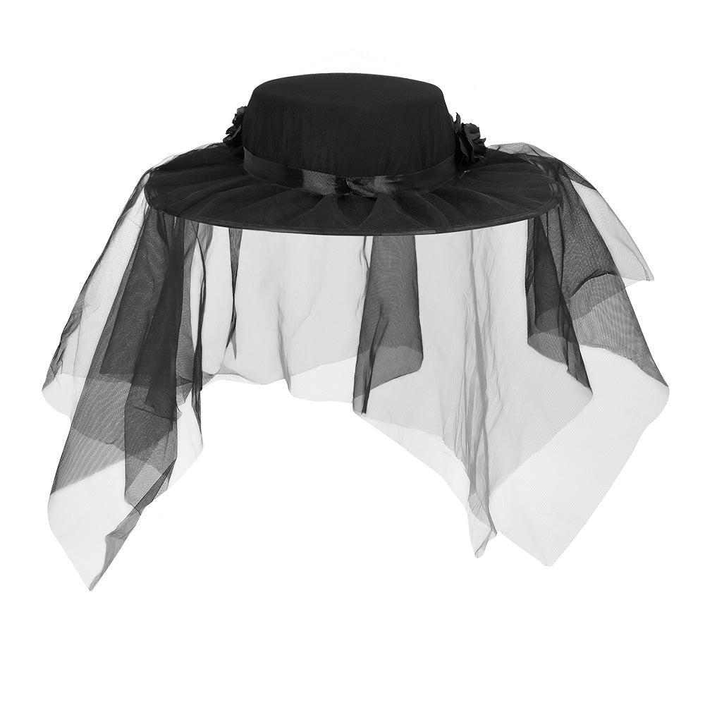 Denne smukt stilfulde sorte hat er afsluttet med sorte og røde blomster, dekoreret med små kranier og indhyllet i et mystisk slør. Blandingen af blomster og kranier giver denne hat et unikt og udtryksfuldt look, som passer perfekt til Day of the Dead-temaet. Tilbehøret til at fuldende et stilfuldt Halloween-outfit.