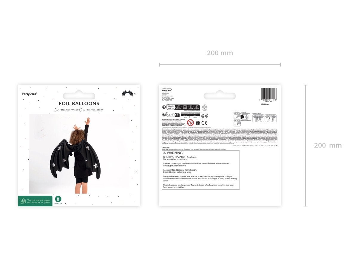 Halloween-heliumballon, sort flagermus, tom, 85 cm