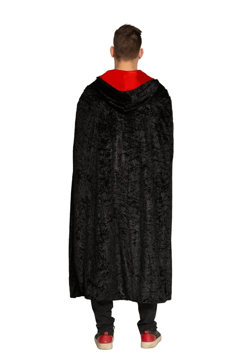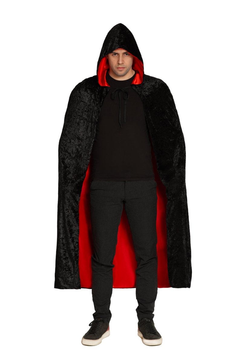 Fuldend dit kostume med denne luksuriøse sort-røde kappe. Kontrastfarverne og det glatte stof giver et elegant look, der er ideelt til udklædningsfester, sceneshows, halloween eller karneval. Kappen er lavet af let og smidig polyester og kan takket være one-size-størrelsen bæres komfortabelt af både voksne og teenagere.