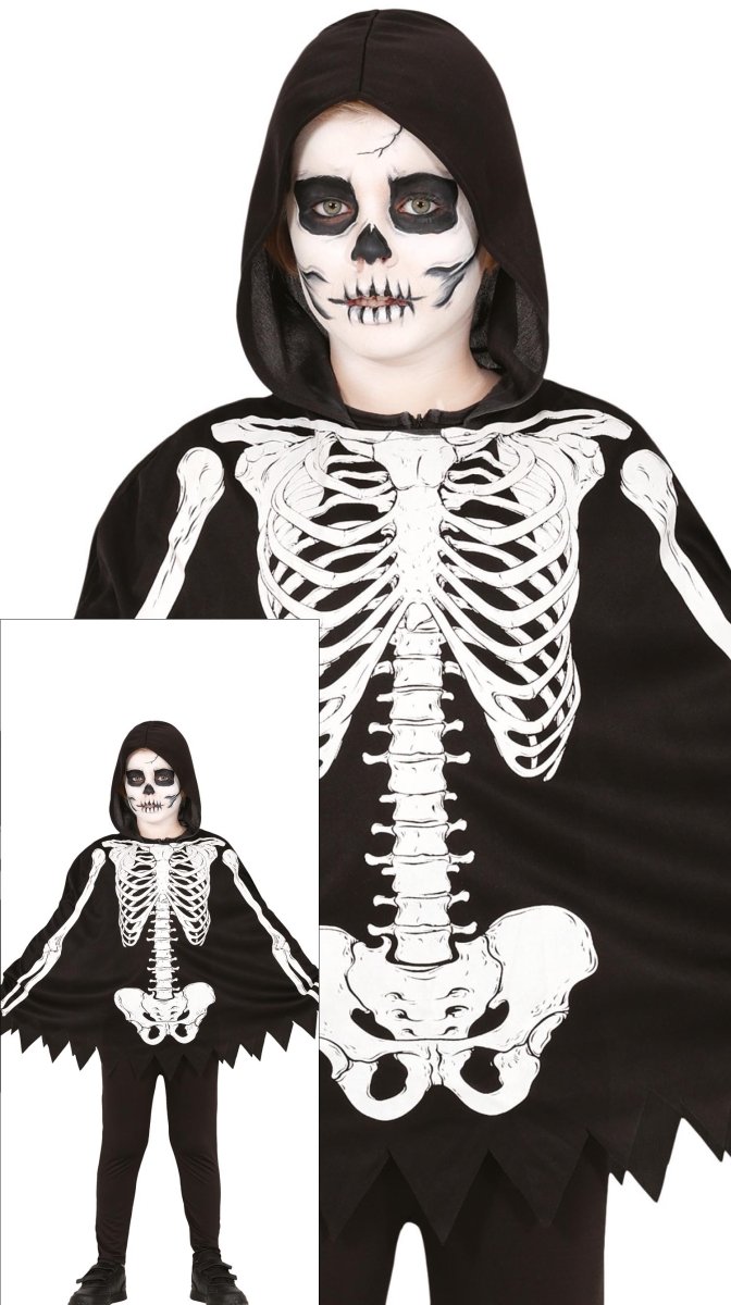 Halloween kostume barn skelet poncho