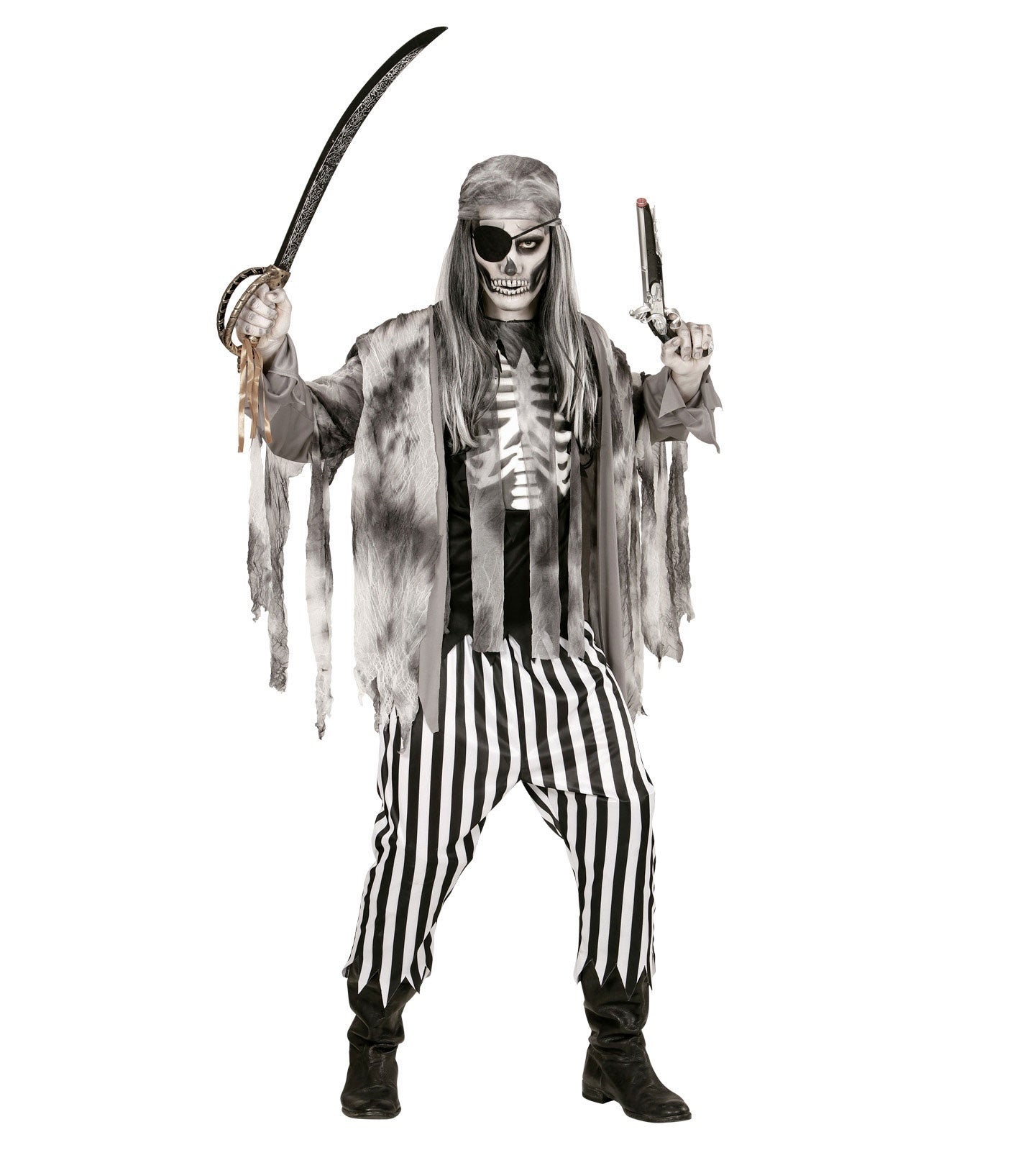 Halloween-kostume sort hvid spøgelsespirat til mænd