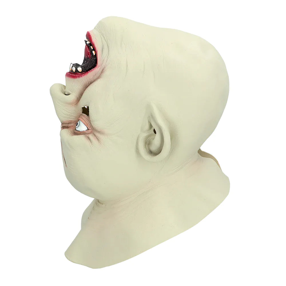 Denne særlige latex-hovedmaske vil vende op og ned på et Halloween-outfit! Bogstaveligt talt! Denne Balthazar-latexmaske ligner en skrigende mand med et opadvendt ansigt. Det perfekte tilbehør til alle, der vil klæde sig ud som et monster eller en besat person til halloween. Under alle omstændigheder vil den give dig gåsehud under en halloweenfest eller til Trick or Treat.