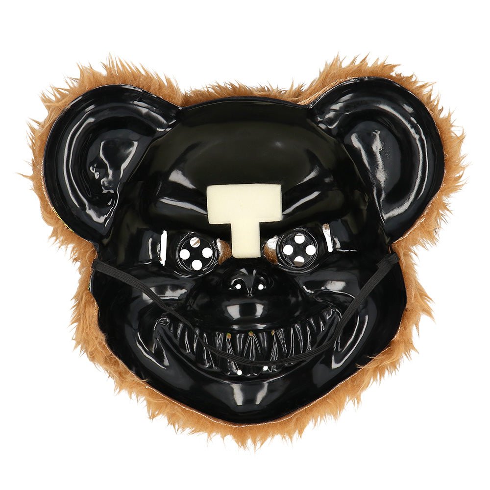 Han er lavet af plys, men denne bamse er alt andet end nuttet! De uhyggelige gule knapøjne og det brede grin med skarpe tænder kombineret med det nuttede bamselook gør denne maske perfekt til et unikt horror-halloweenkostume. Et uhyggeligt sjovt tilbehør til en halloweenfest, et hjemsøgt hus eller en cosplay-begivenhed.