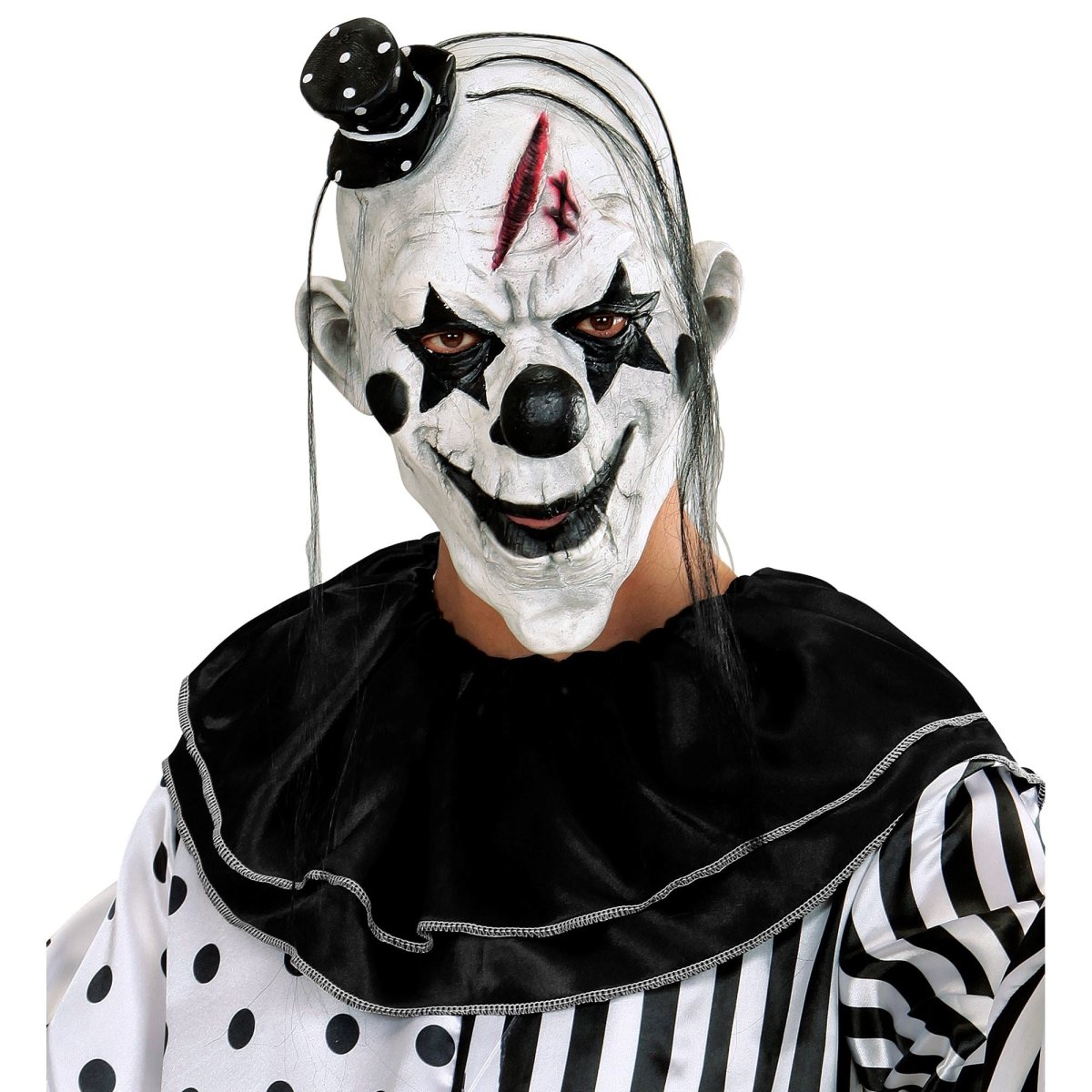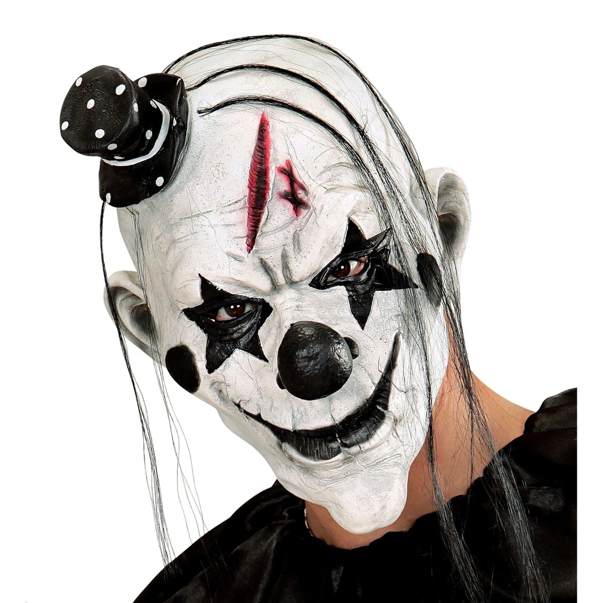 Pakkeindhold: maske dræberklovn med hår og minihat