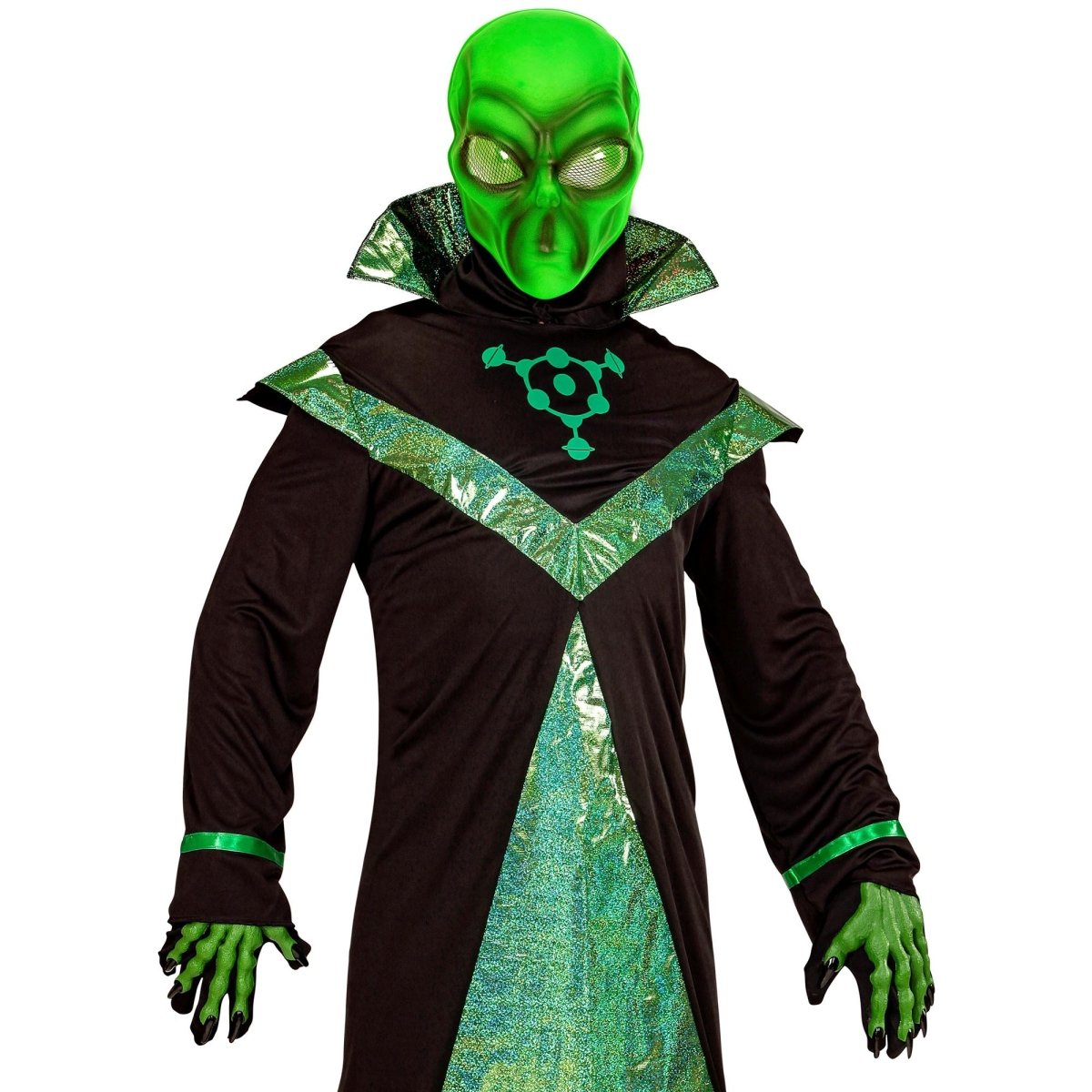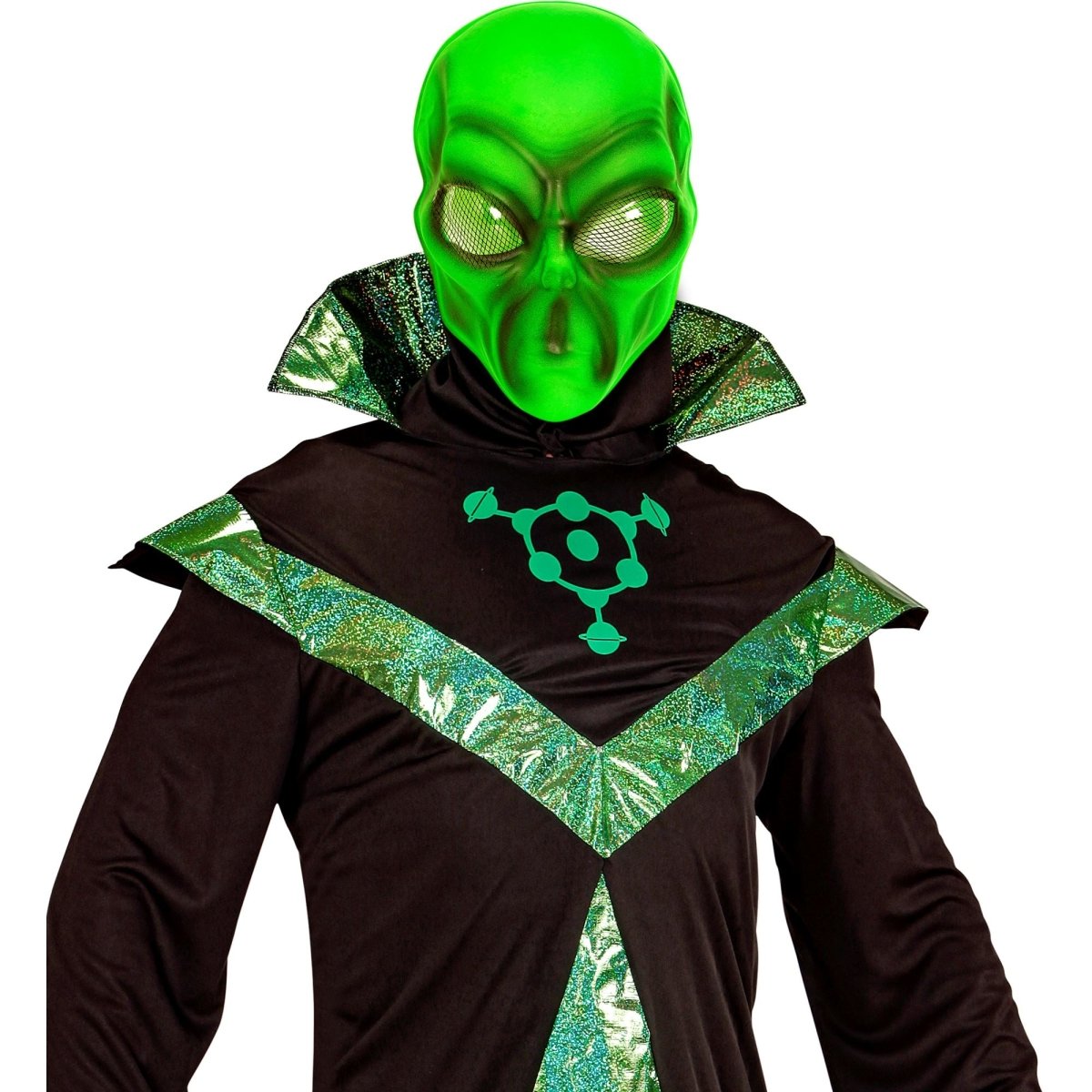 Forvandl dig til en alien med denne grønne alien-maske. Perfekt til halloween, temafester eller udklædningsfester, hvor du gerne vil skille dig ud.