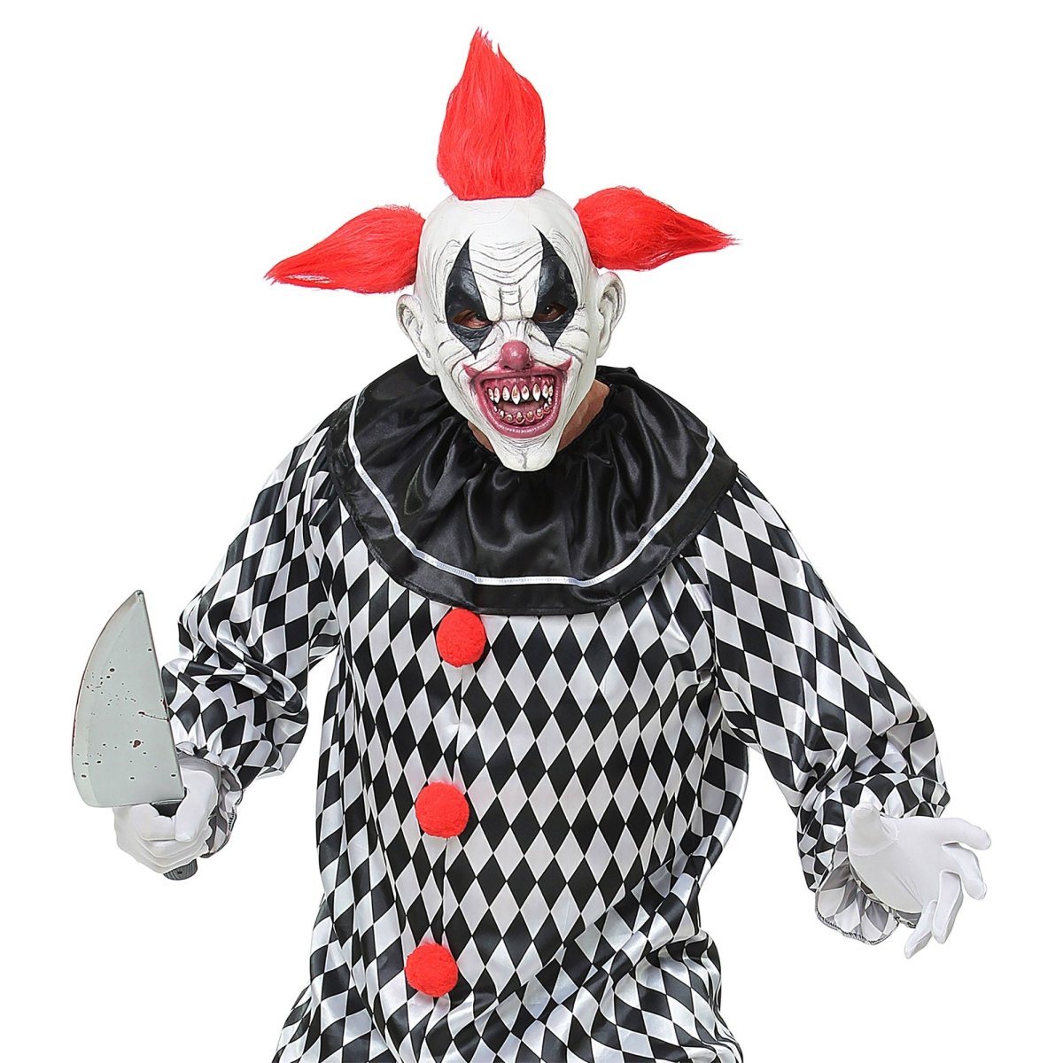 Fuldend dit uhyggelige halloween-outfit med denne røde og hvide klovnemaske. Perfekt til temafester, trick-or-treat eller udklædningsfester, hvor der ønskes en skræmmende effekt.
