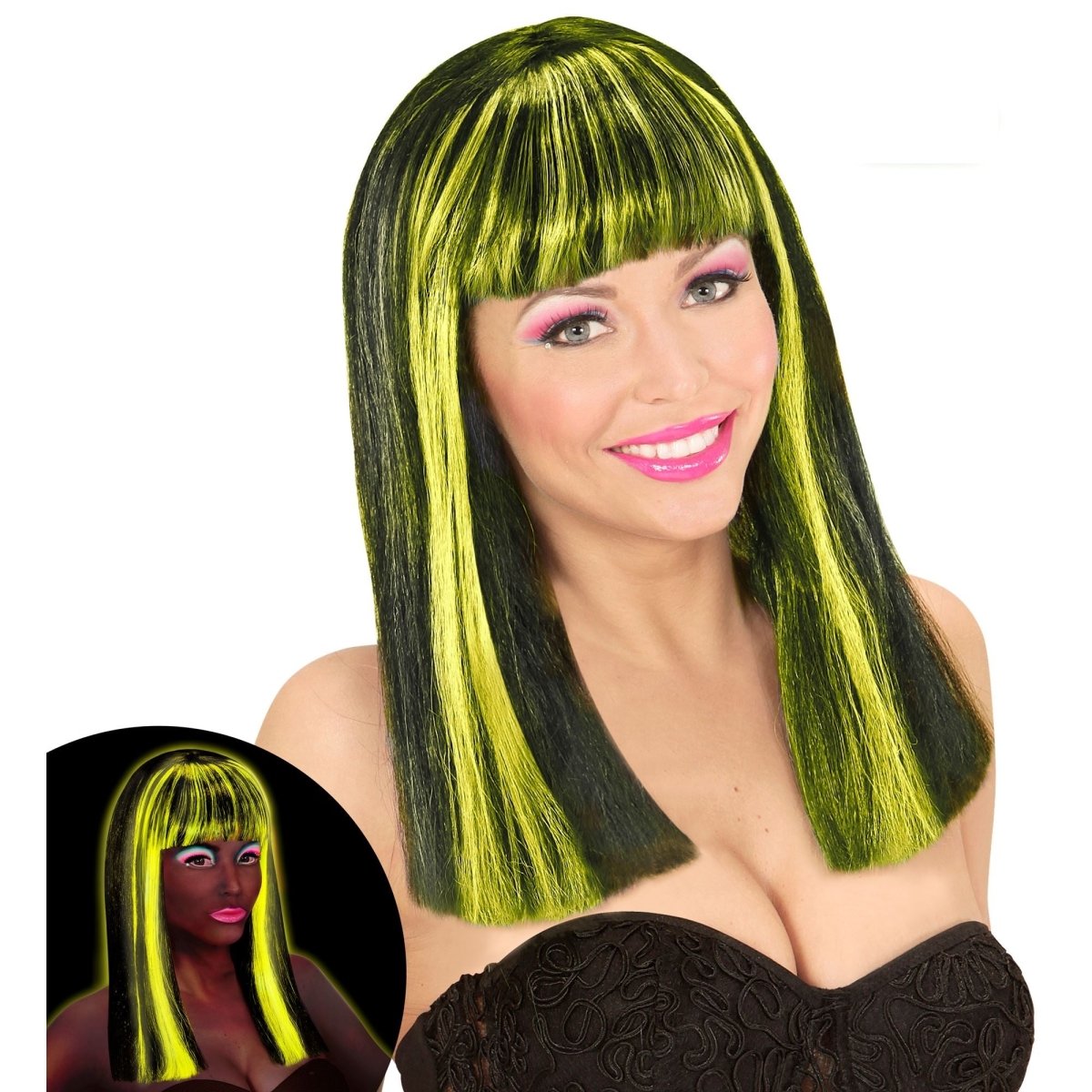 Halloween-paryk med sorte, gule striber