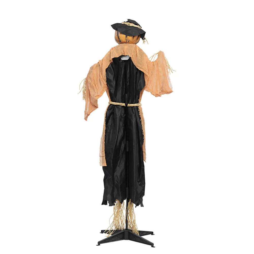 Giv liv til din halloweenfest med denne 1,9 meter lange Angry Pumpkin-dukke. Dette interaktive fugleskræmsel har lys, lyd, bevægelse og en lydsensor, som får det til at reagere på lyde og bevæge hovedet, mens dets røde øjne lyser op, og der høres uhyggelige lyde. Perfekt som en iøjnefaldende dekoration til dit hjem, festlokale eller hjemsøgte hus.