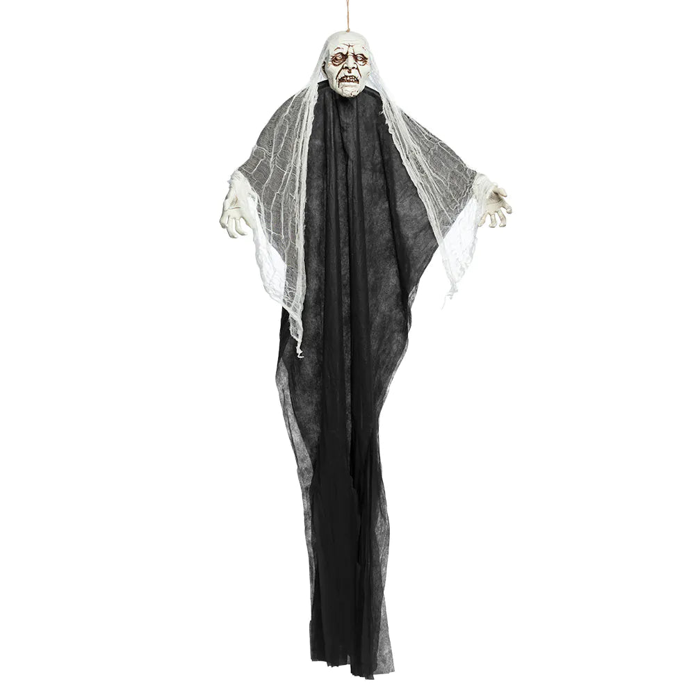Føj et uhyggeligt og ikonisk præg til din halloweendekoration med denne 1,7 meter lange halloweendukke Light Ghost. Perfekt til at skabe en uhyggelig atmosfære under halloween derhjemme eller i et hjemsøgt hus. Producteigenschappen: Indhold:Halloween-dekoration Let spøgelse Størrelse: 1,70 meter Materiale: 60% PET, 25% polypropylen, 15% bomuldsfibre Muligheder: Lys, lyd og lydsensor Batterier: 3 AG13/LR44-batterier medfølger